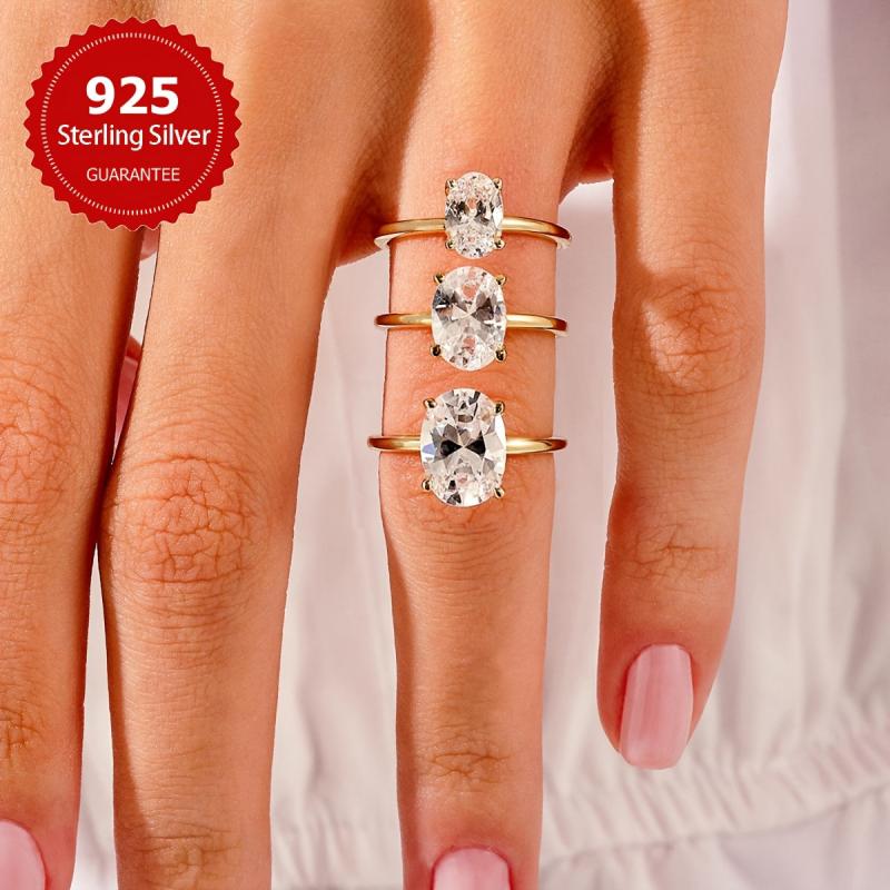 This stunning ring features a 1CT, 2CT, or 3CT oval synthetic zirconia stone set in a s925 sterling silver band. Perfect as an engagement, wedding, or eternity ring for women.