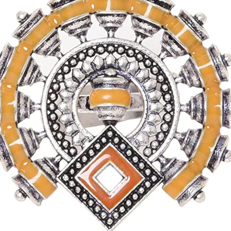 Add a touch of traditional charm with this brass ring featuring an oxidized half moon design in yellow. Perfect for making a statement.