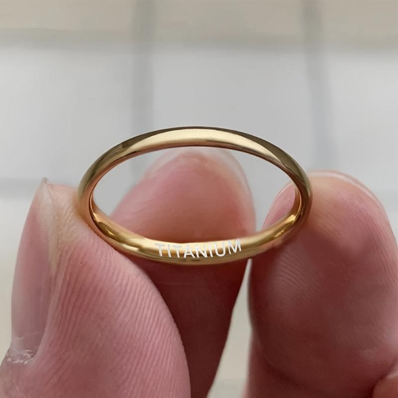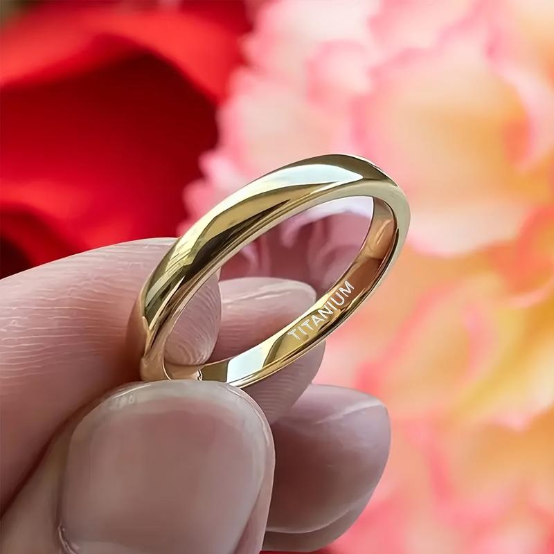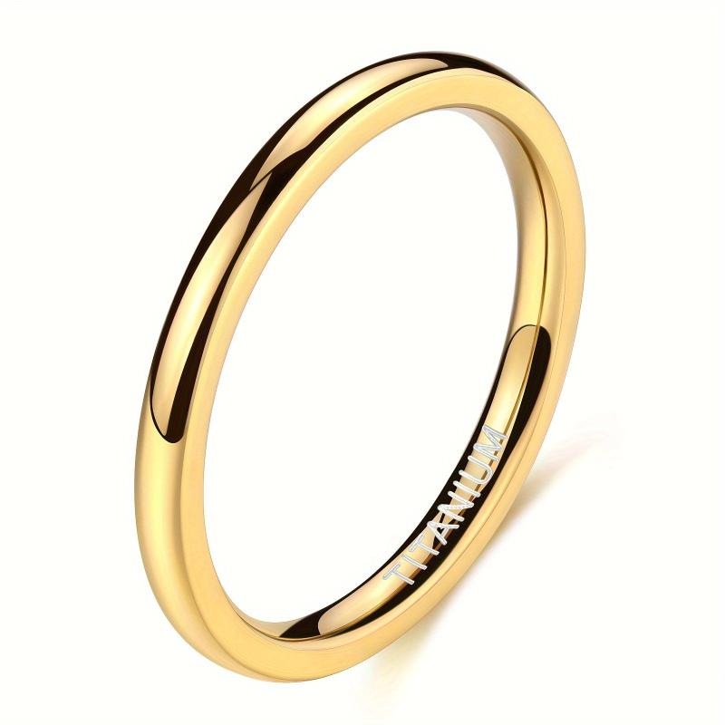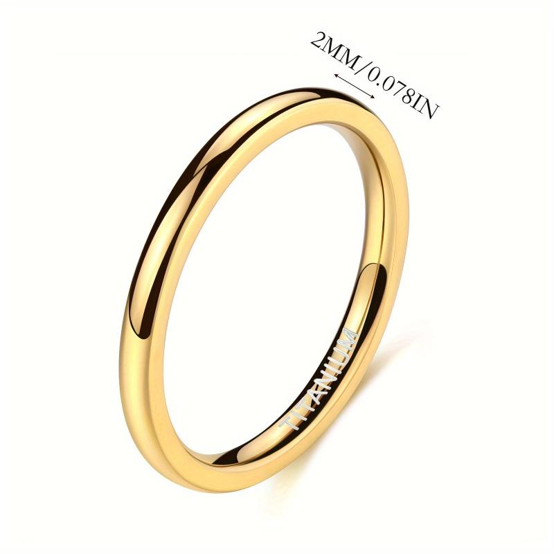 This 2mm gold tone titanium steel ring is perfect for daily wear and casual dates. It makes a great gift for her.