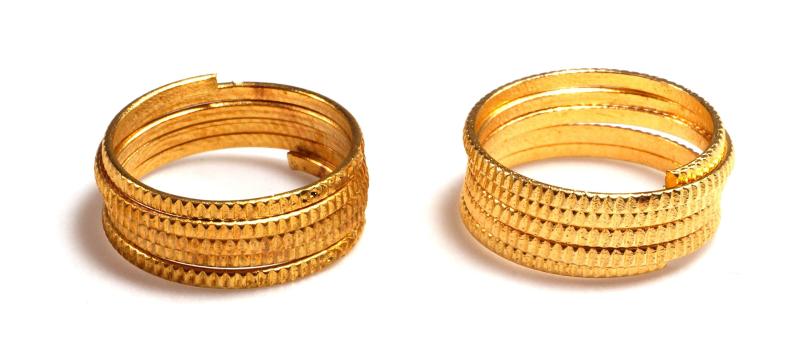 This Panchaloha toe ring features a metal alloy round spring design with cut patterns, creating a stylish and traditional look for your feet.
