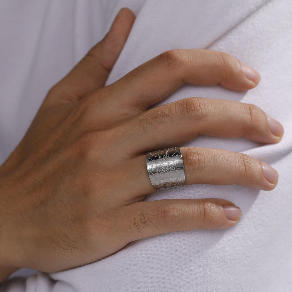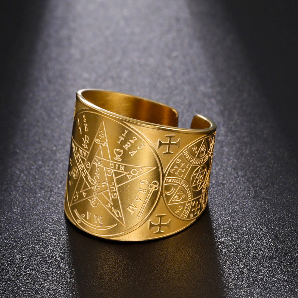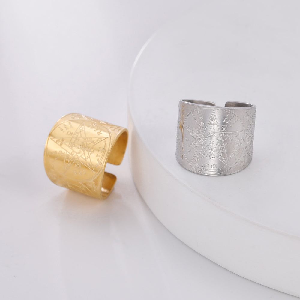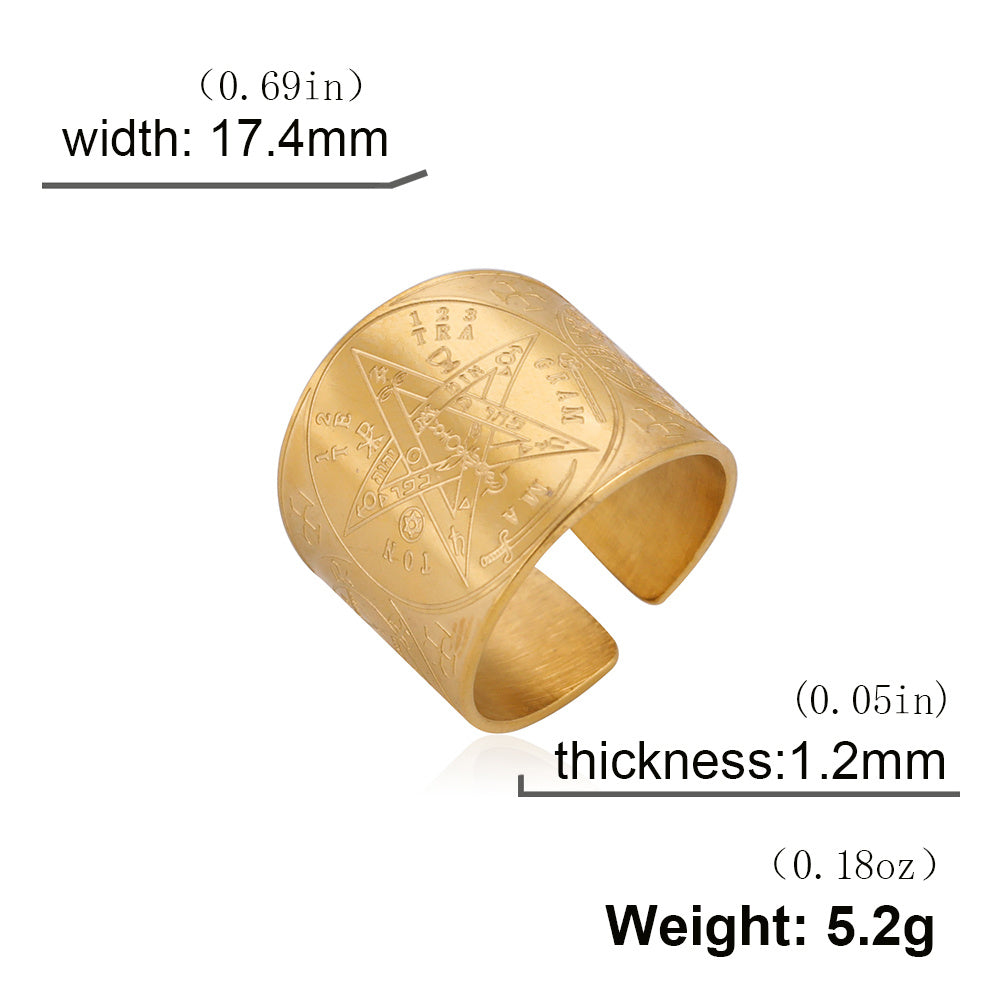 Embrace the ancient power with this stunning pentagram ring made of stainless steel. Featuring the name of God, it's a symbol of strength and protection.