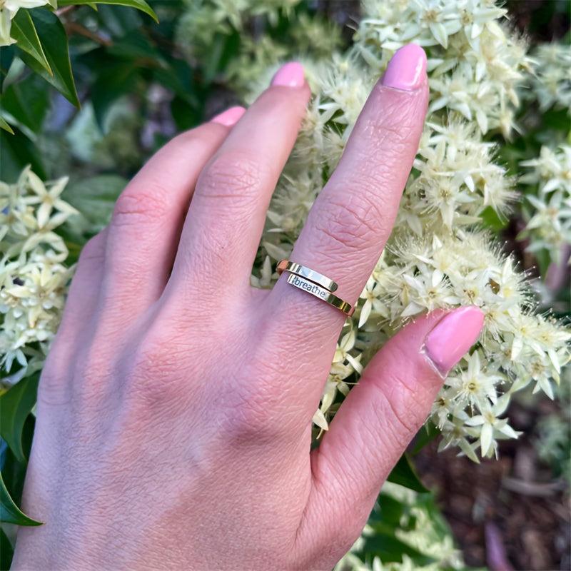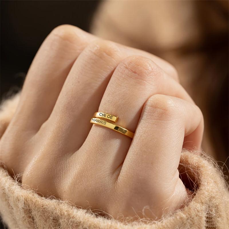 This beautiful open ring is perfect for women, featuring your custom engraved text. Made from high-quality 316 stainless steel, it's adjustable to fit any finger size.