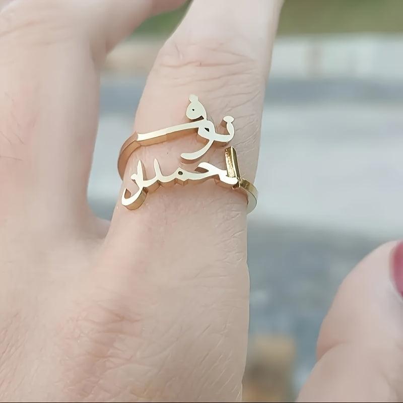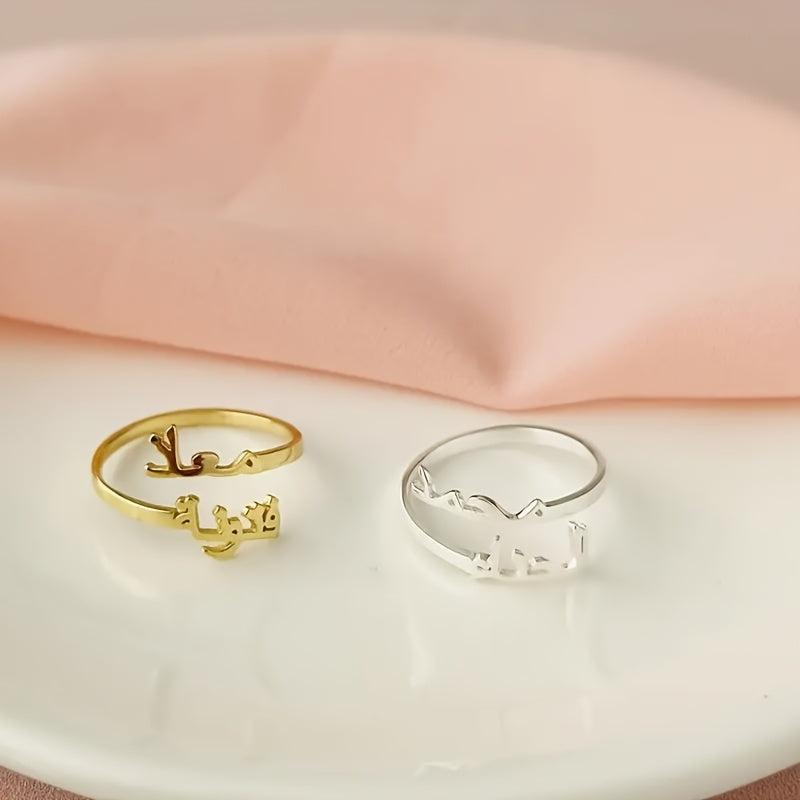 Elegant and minimalist, this 2pcs set of customizable Arabic name open rings is perfect for daily wear. Made from high-quality stainless steel, these rings make a thoughtful gift for women.