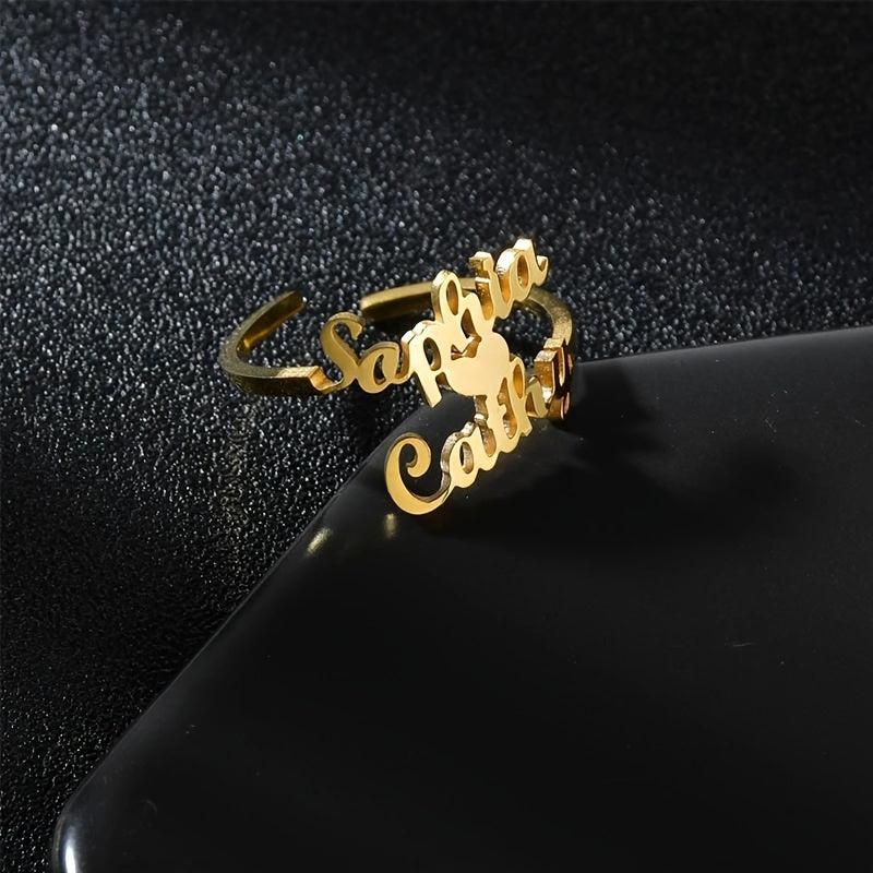 Beautifully crafted stainless steel ring with family name and double heart design featuring multiple names. A perfect gift for loved ones.