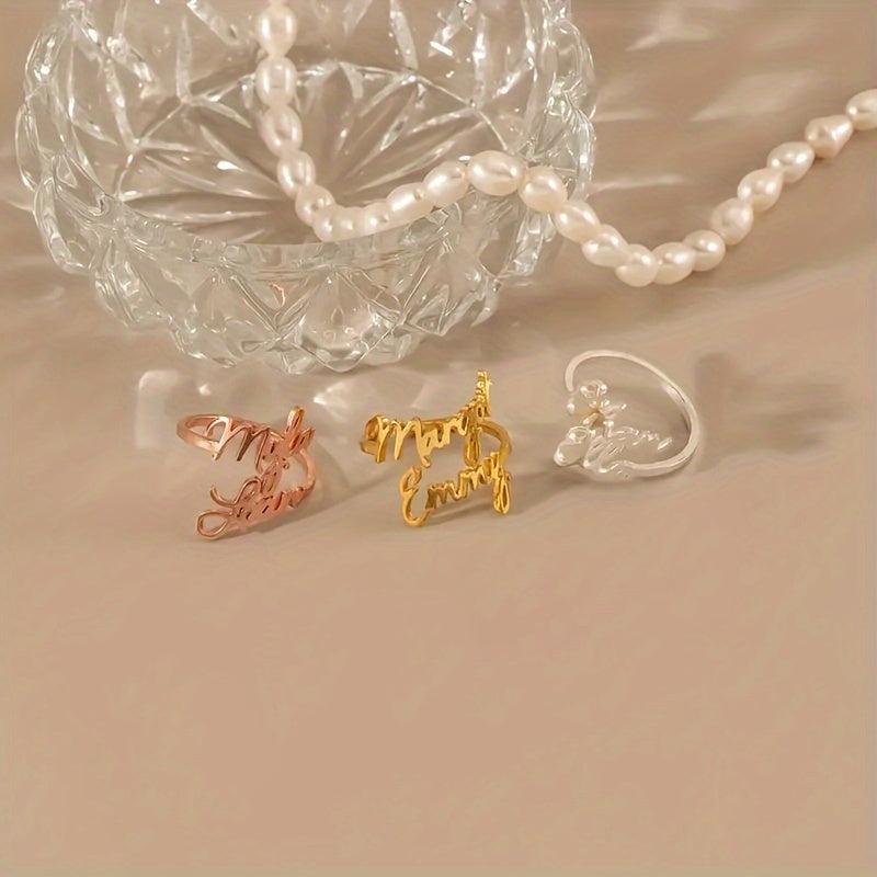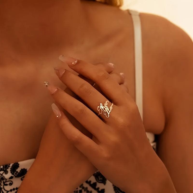 This adjustable and customizable stainless steel name ring is perfect for weddings or casual attire. Make it your own with your name or a special word.
