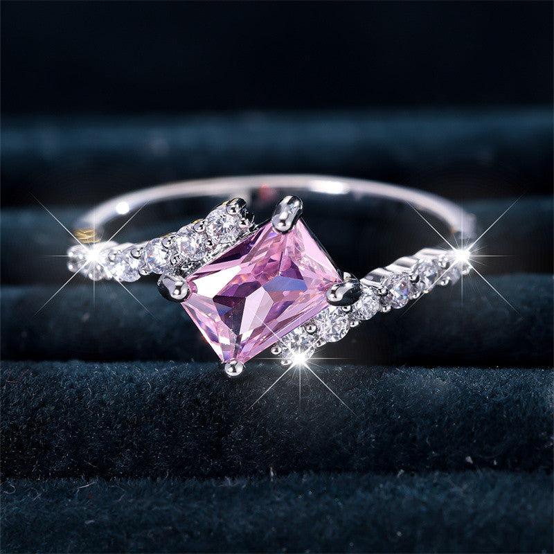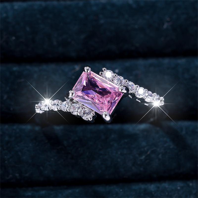 Stunning pink synthetic zirconia ring with a luxurious golden tone band, perfect for weddings, Valentine's Day, and romantic occasions. Durable design ideal for vacation style.