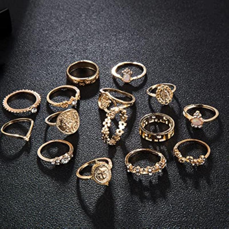 Elevate your style with this set of 15 plated contemporary stackable rings. Mix and match to create unique looks for any occasion.