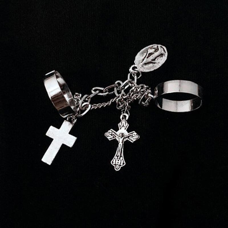 Elegant set of cross chain rings in plated tone. Perfect for everyday wear or special occasions.