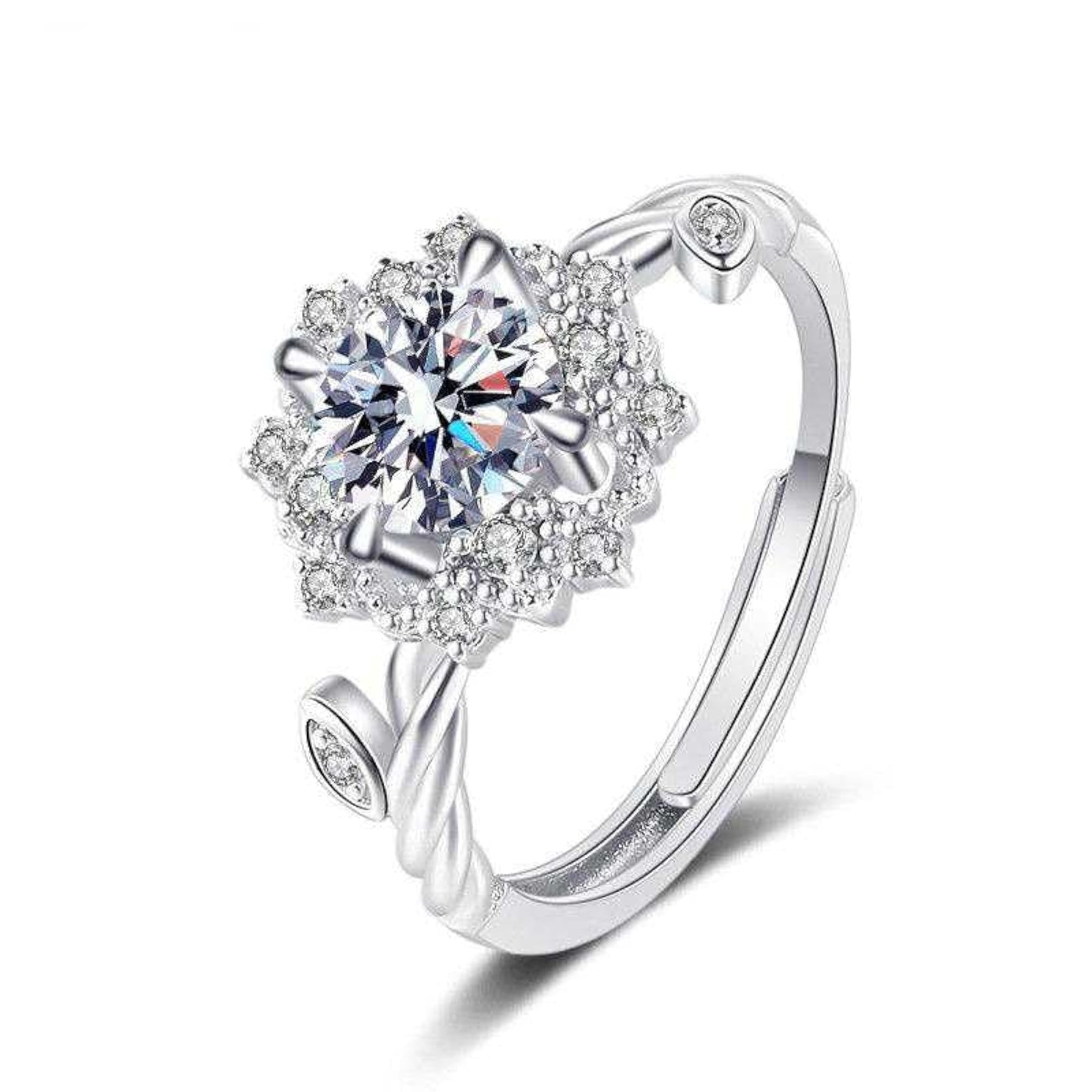 Elegant floral ring featuring sparkling cubic zirconia stones, perfect for girls and women.
