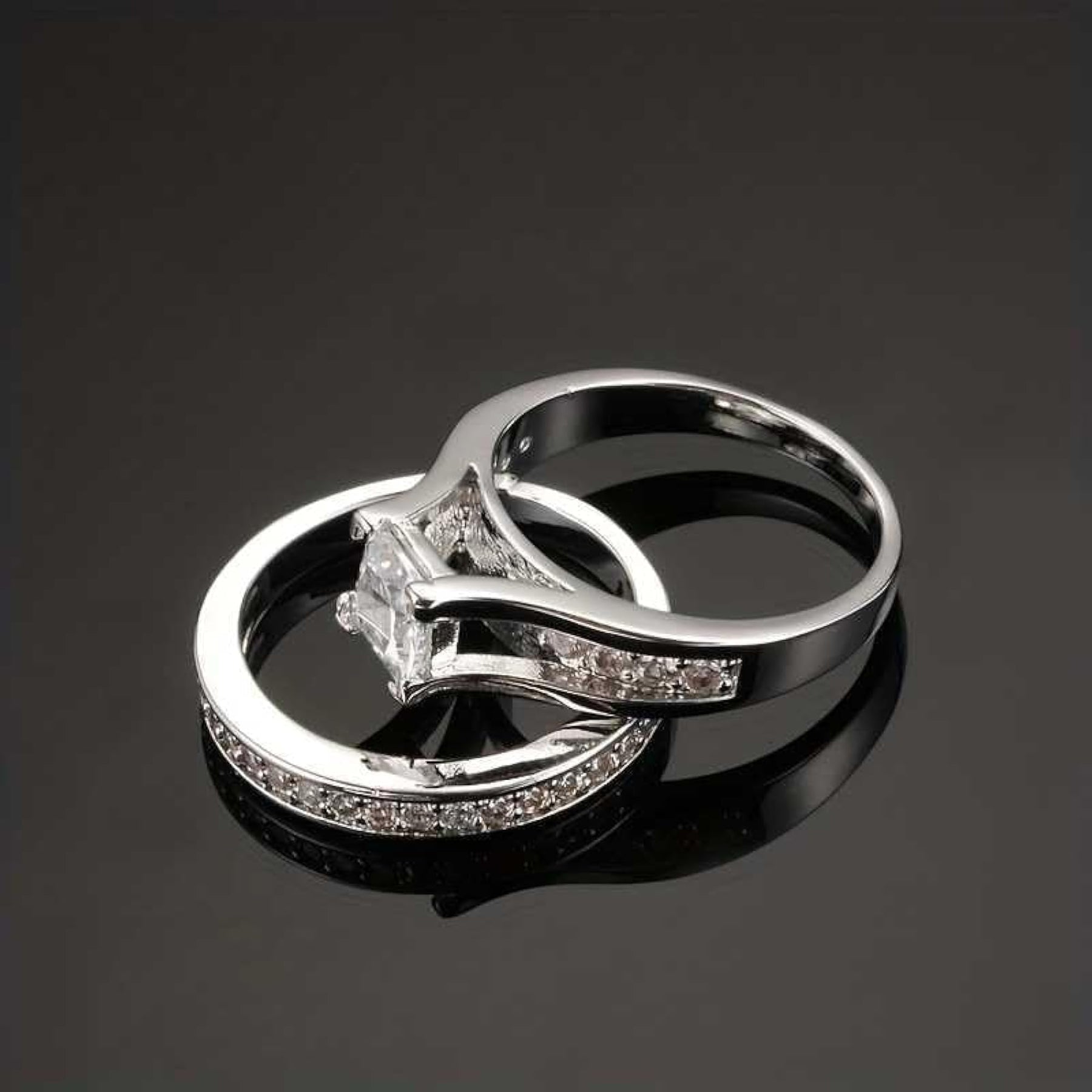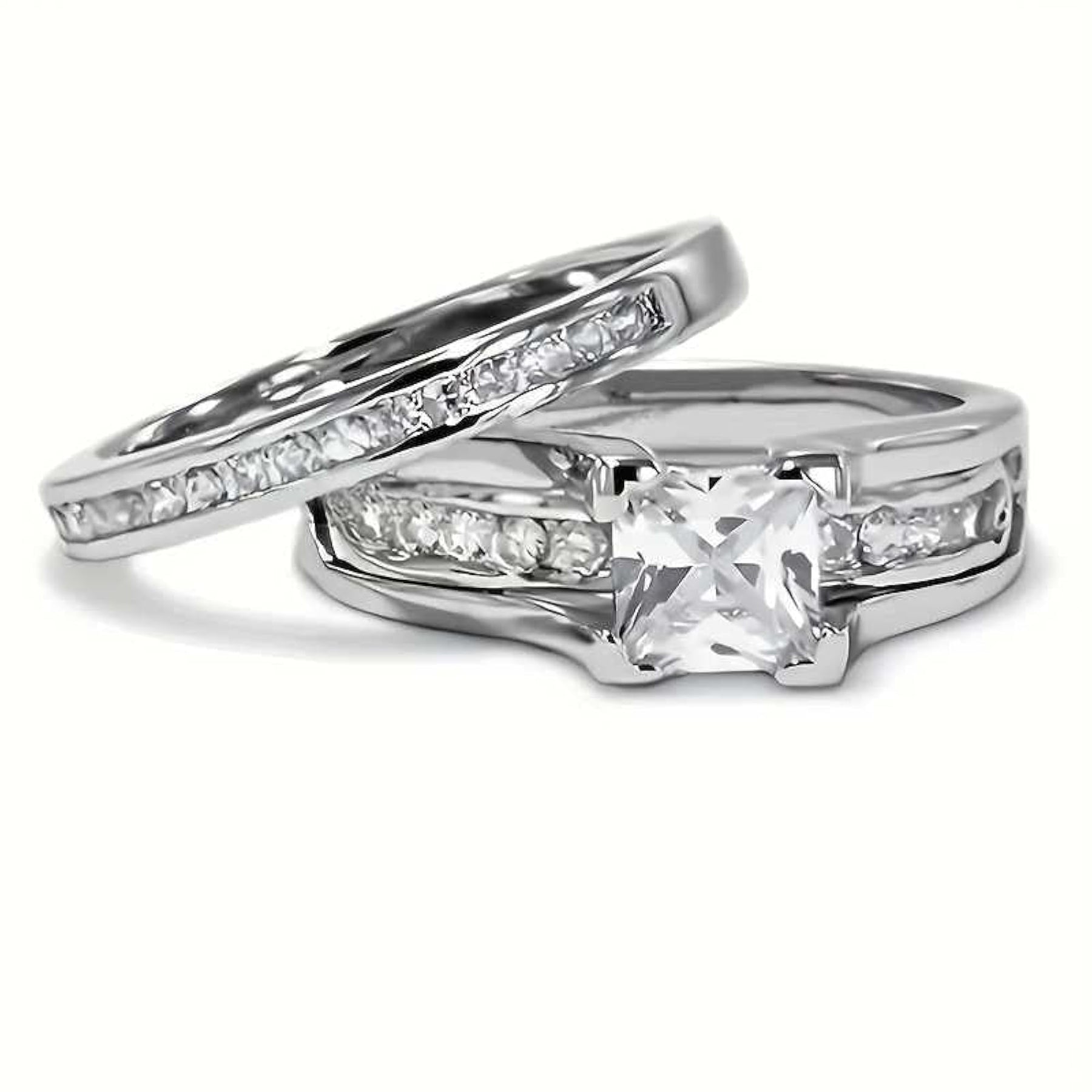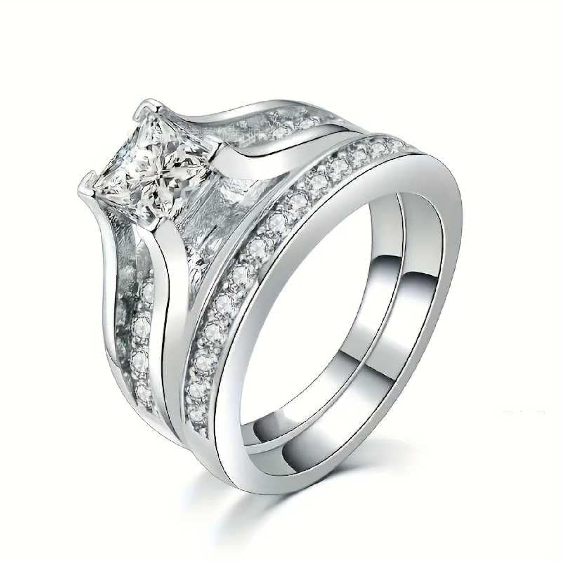 Add a touch of elegance to your wedding attire with this beautiful princess cut ring. Made with high-quality cubic zirconia stones, this ring is a perfect choice for brides and women.