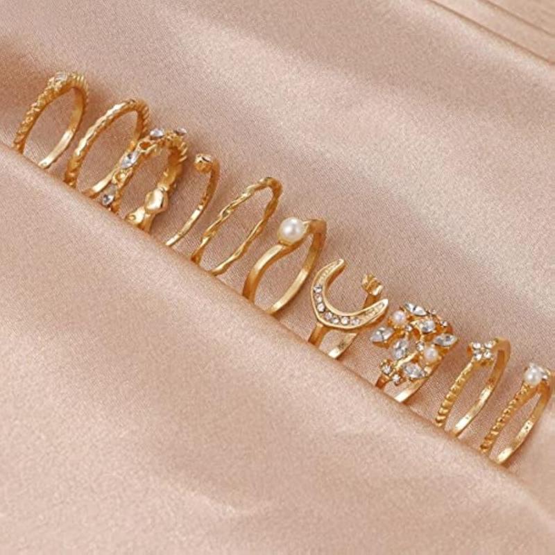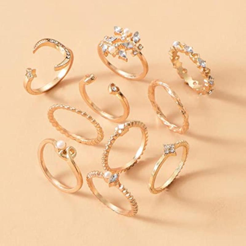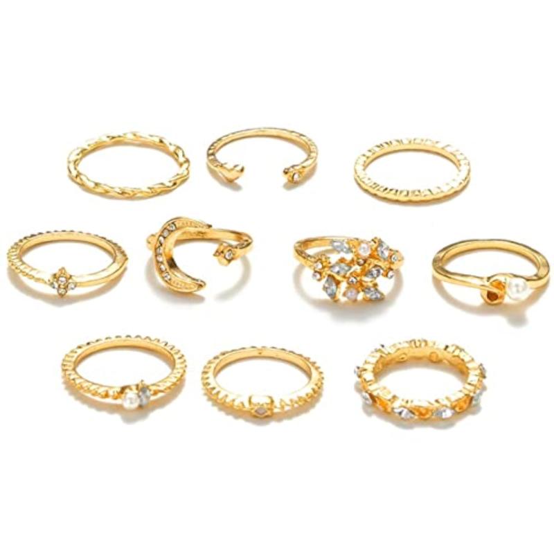 Elevate your style with this set of 10 stackable rings. Made with high-quality materials, these rings can be worn together or individually for a versatile look.