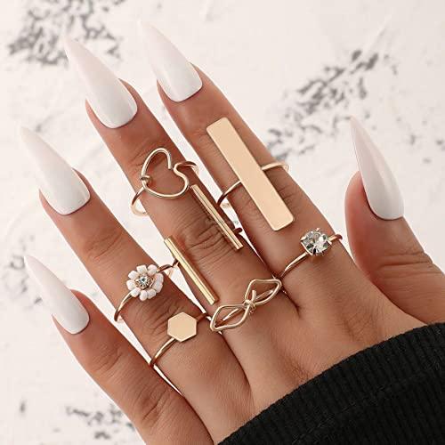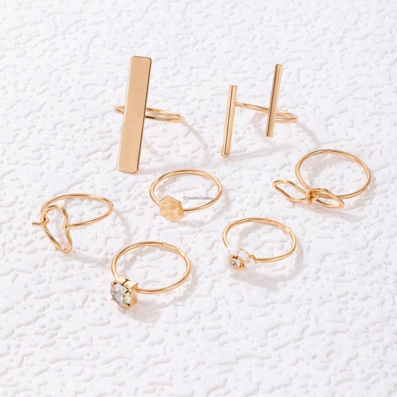 Elegant and modern set of 7 stackable rings with a plated finish.
