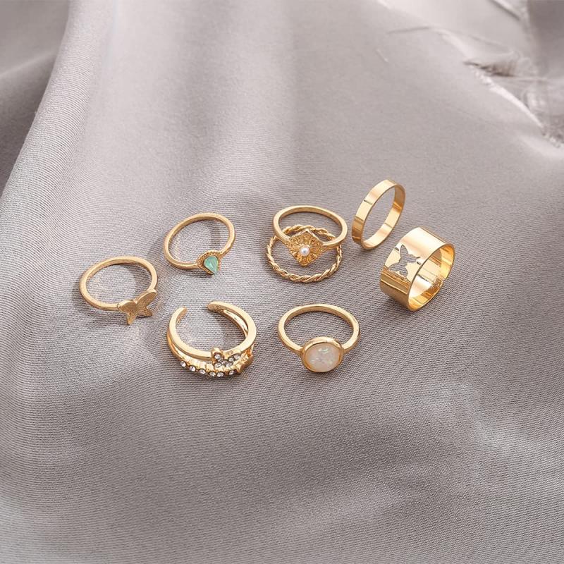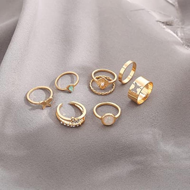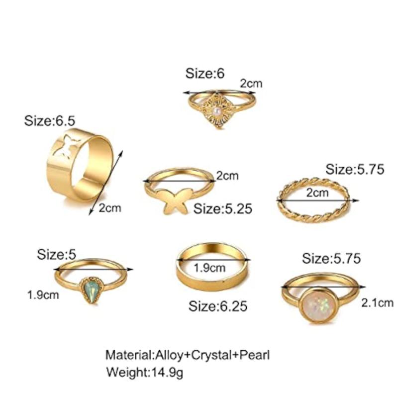 Elevate your style with this set of 7 plated -toned rings perfect for everyday wear. Each ring features a unique design to complement any outfit.