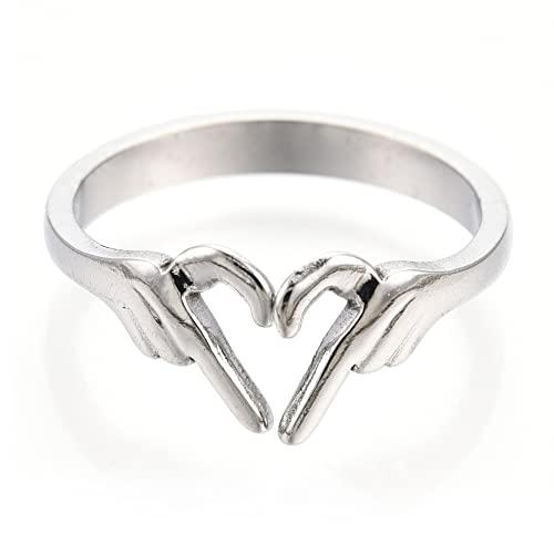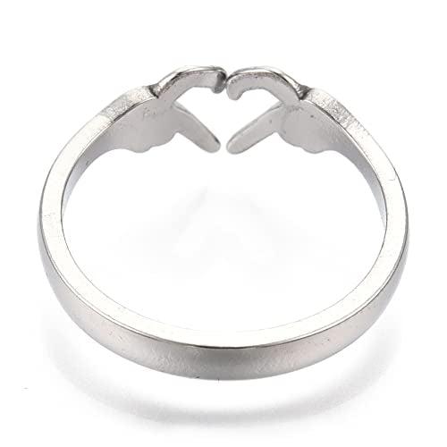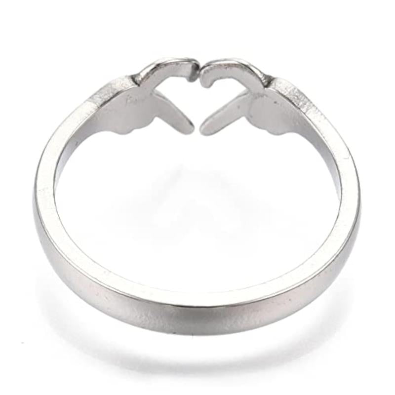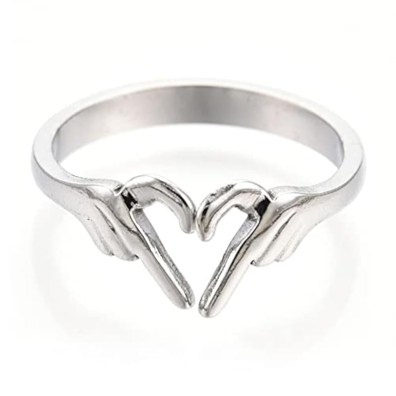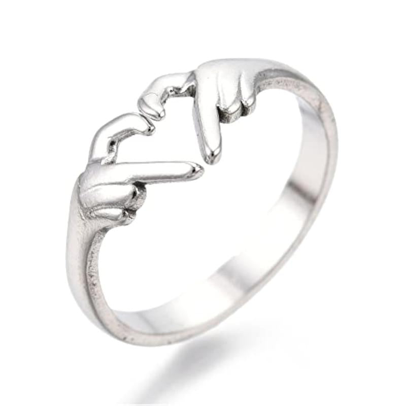 This elegant proposal ring features a hand heart symbol design in platinum plating that won't tarnish or rust.