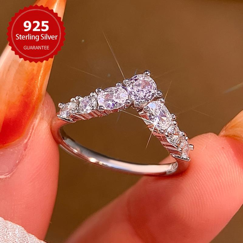 This elegant ring is made of 925 silver and features a synthetic zircon stone, perfect for all seasons and as a sparkling gift for engagements. It weighs only 3.2g, making it comfortable to wear.
