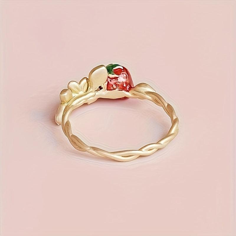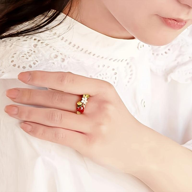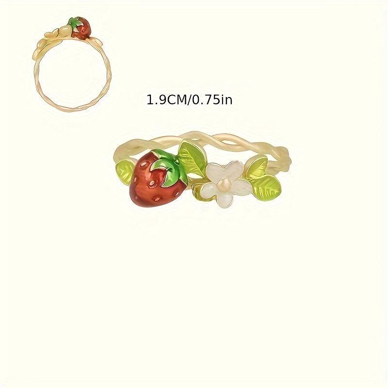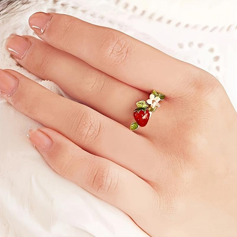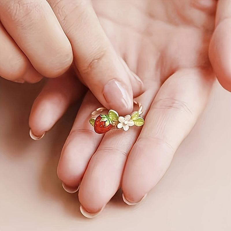 Add a touch of playful charm to your look with this strawberry and floral open ring. Made from alloy, this accessory is perfect for daily wear or parties.