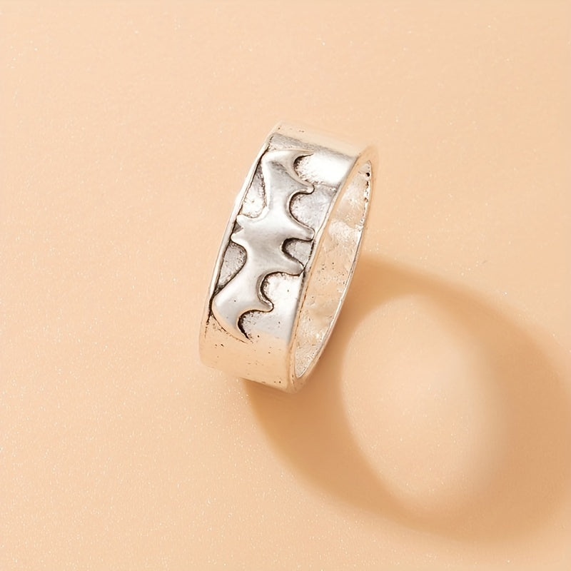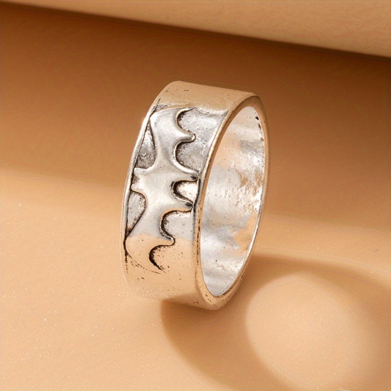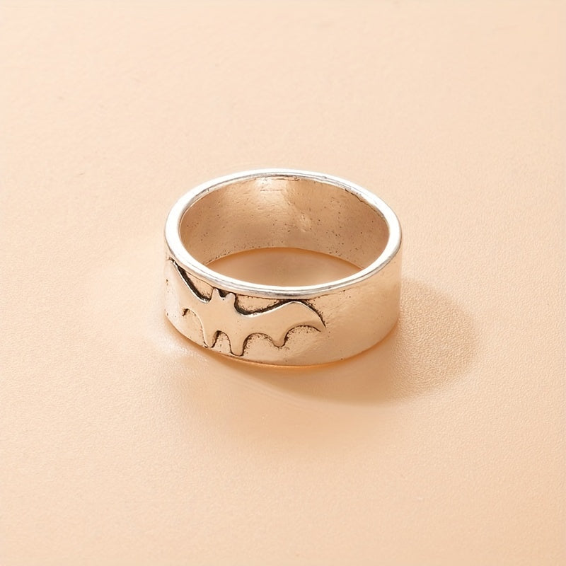 Stand out with this exaggerated punk hip hop style finger ring featuring a cartoon bat pattern.