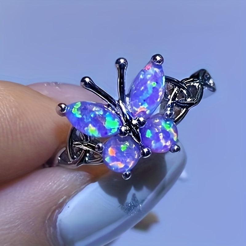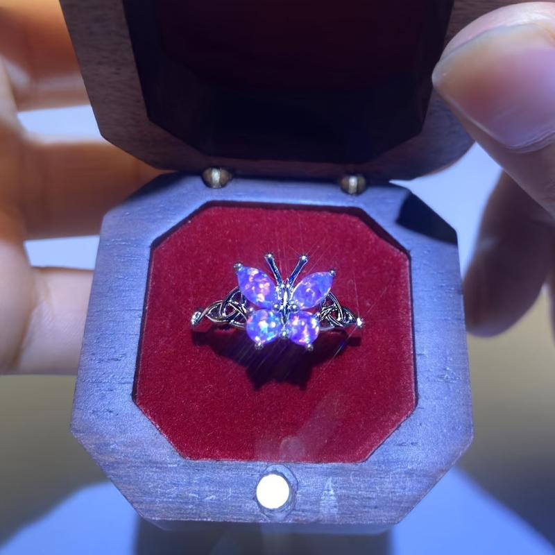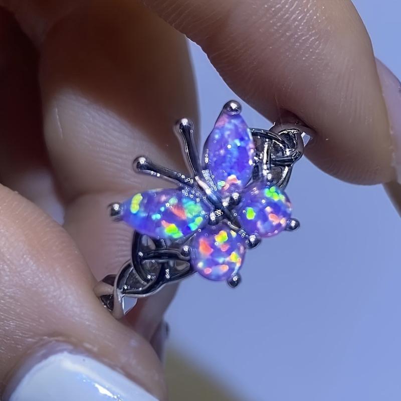 Add a touch of boho charm to your look with this stunning purple opal butterfly ring featuring an infinity symbol. Perfect for weddings, parties, and everyday wear.