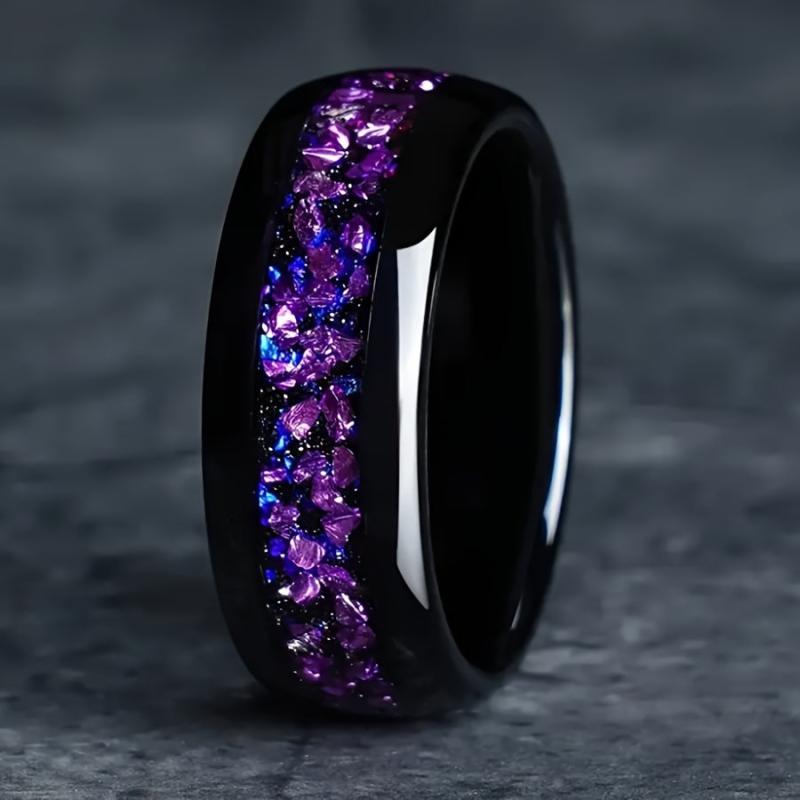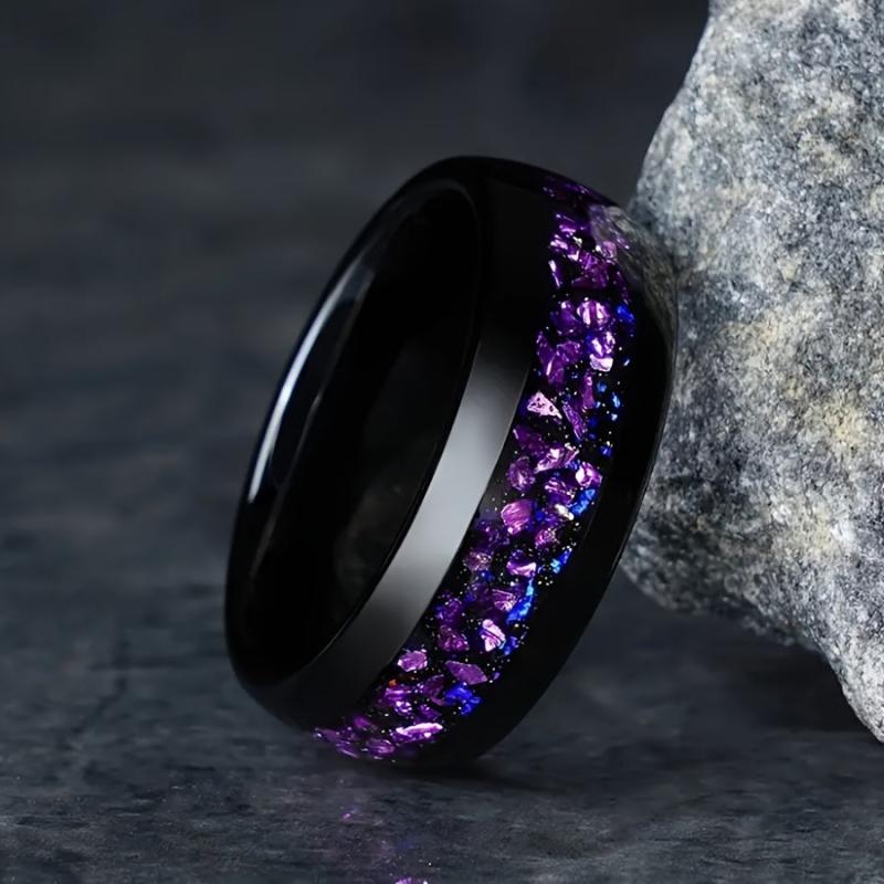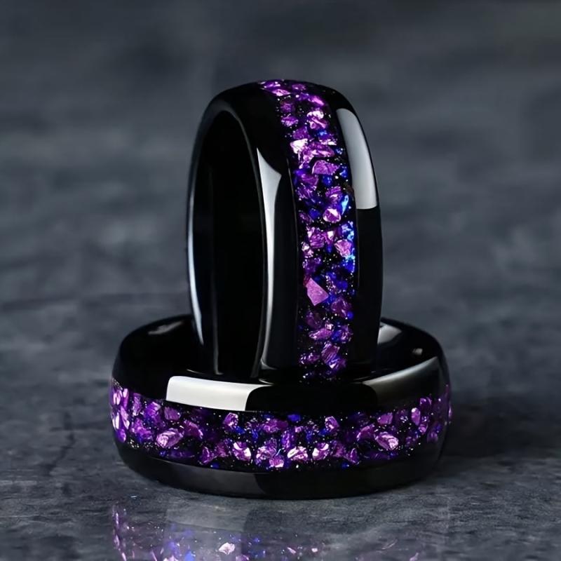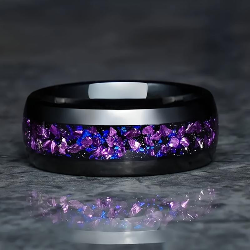 Elevate your casual attire with this stunning purple starry sky floral ring. Made of durable stainless steel with a sparkling cubic zirconia inlay.