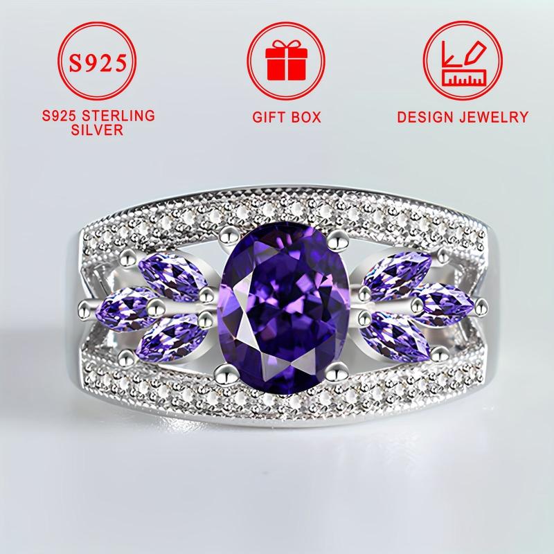 This elegant ring features a low allergy nickel purple synthetic zirconia design, perfect for daily wear, parties, and holidays. Crafted in high-quality S925 sterling silver.