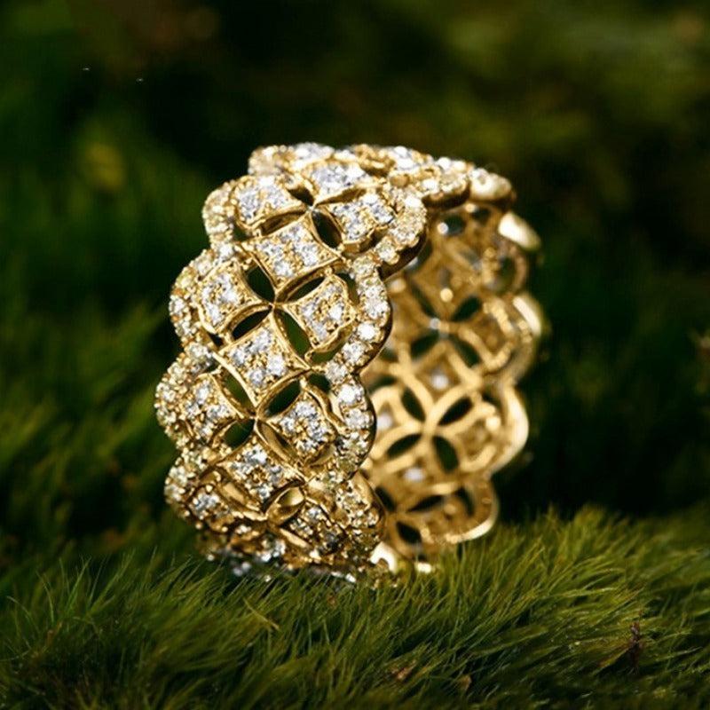 Add charm to your look with this golden tone plated ring featuring synthetic zirconia stones. Perfect for daily wear or special occasions.