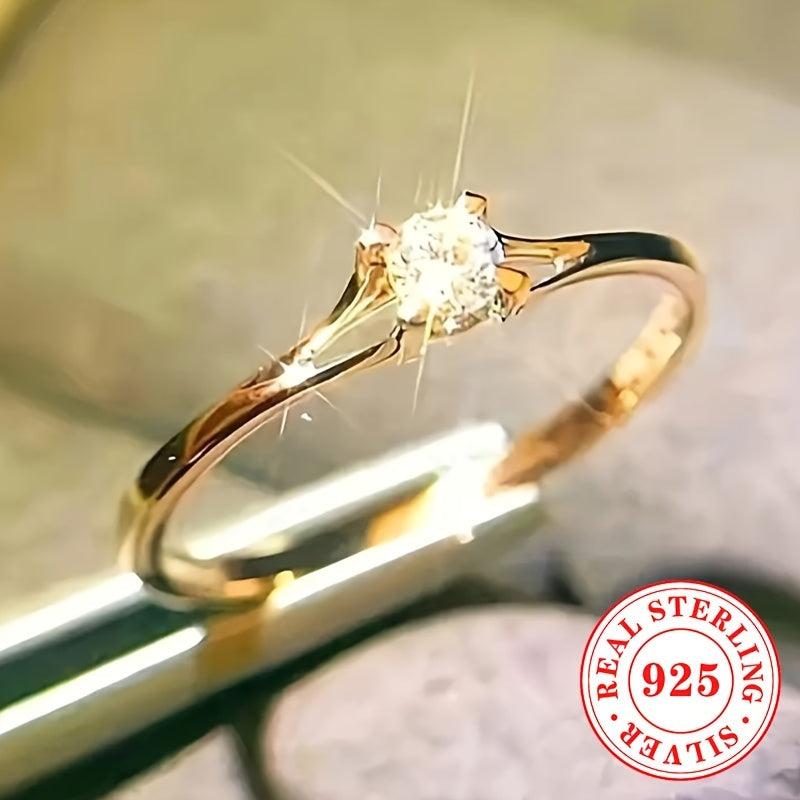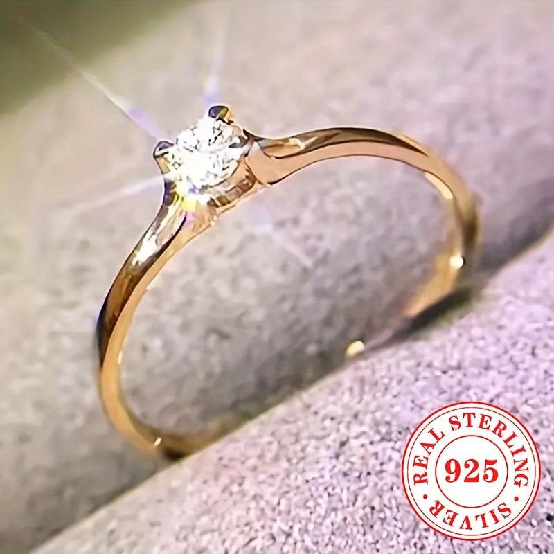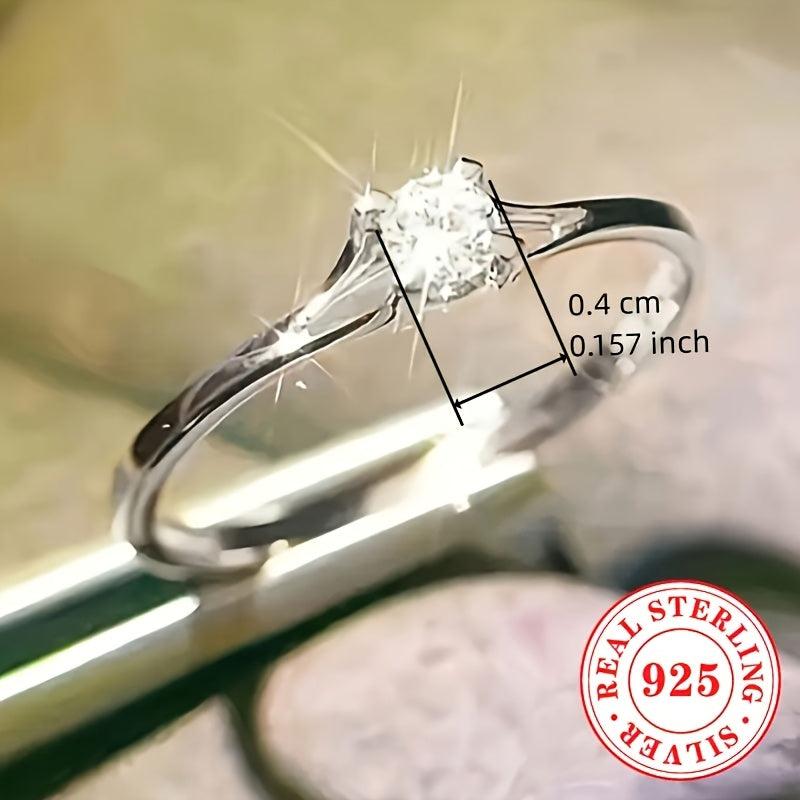 Elegant and stunning, this S925 silver engagement ring features a single synthetic zirconia stone in a 4-prong setting. Perfect for weddings or special occasions.