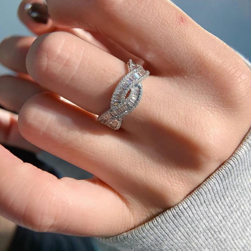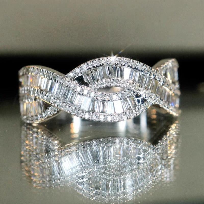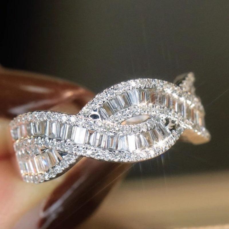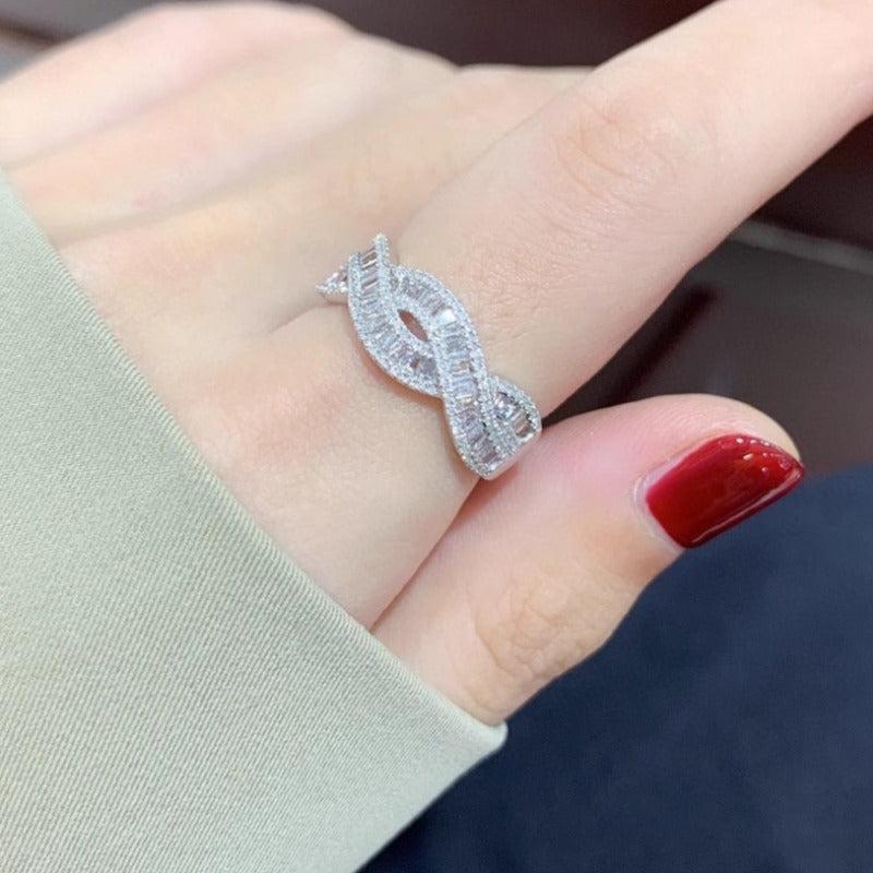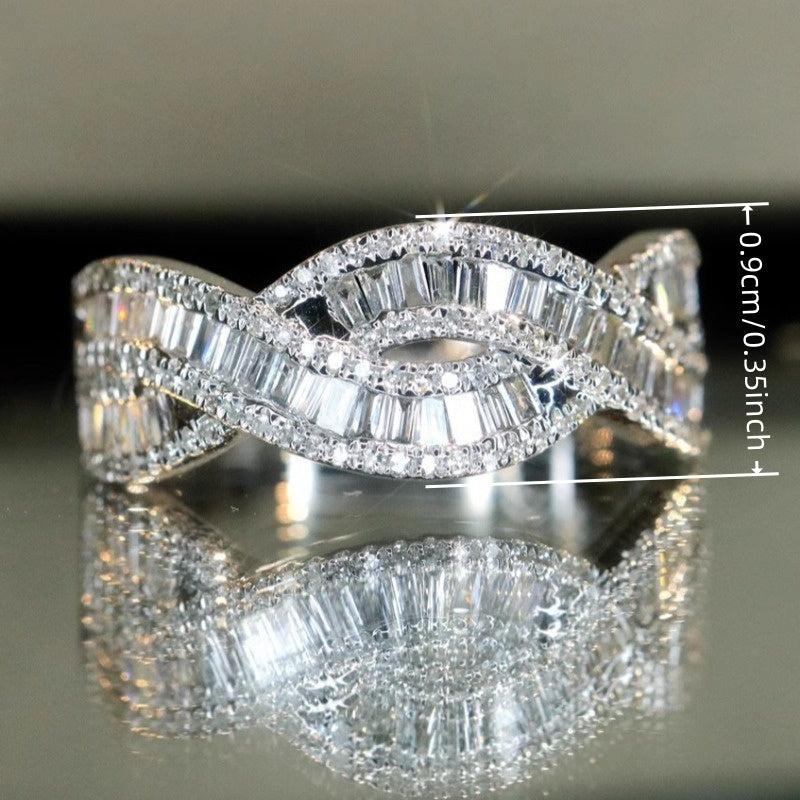 Elevate your style with this sparkling ring featuring a double intertwined band design adorned with synthetic zirconia stones and a golden plating finish. Perfect for daily wear and a dazzling April birthstone jewelry piece.