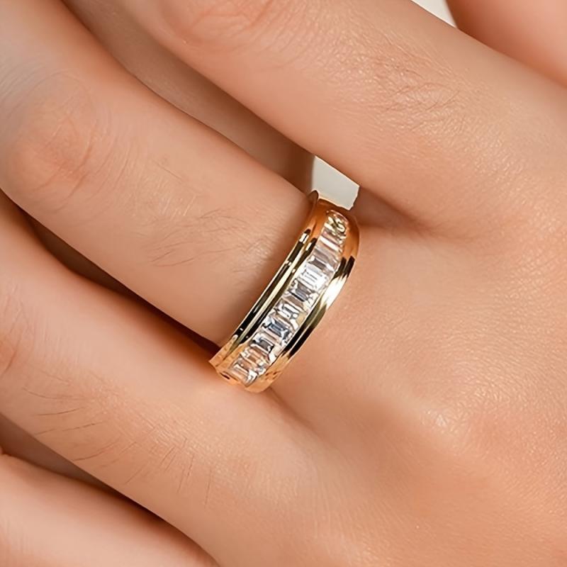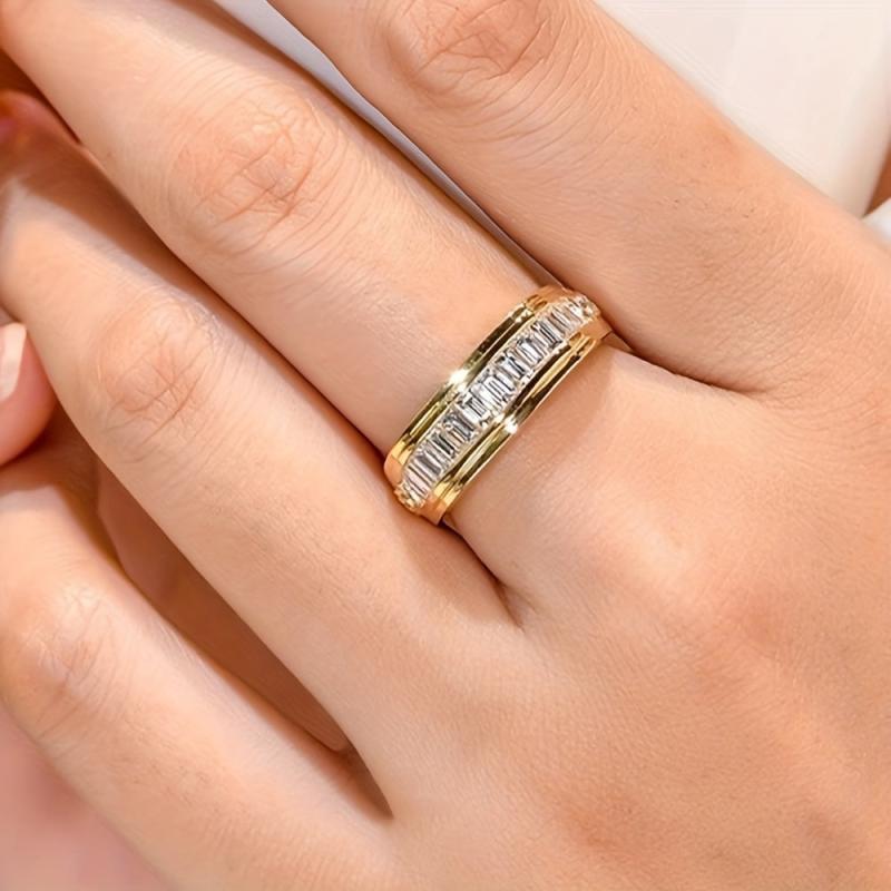 This minimalist square cubic zirconia ring features KC golden plating and is an April birthstone gift perfect for any occasion.