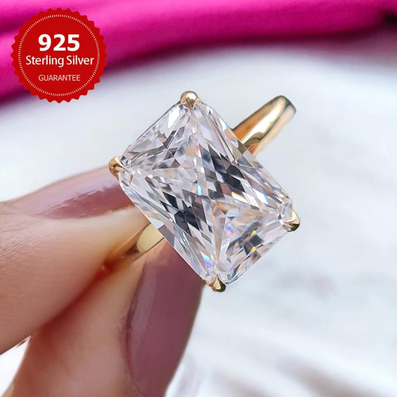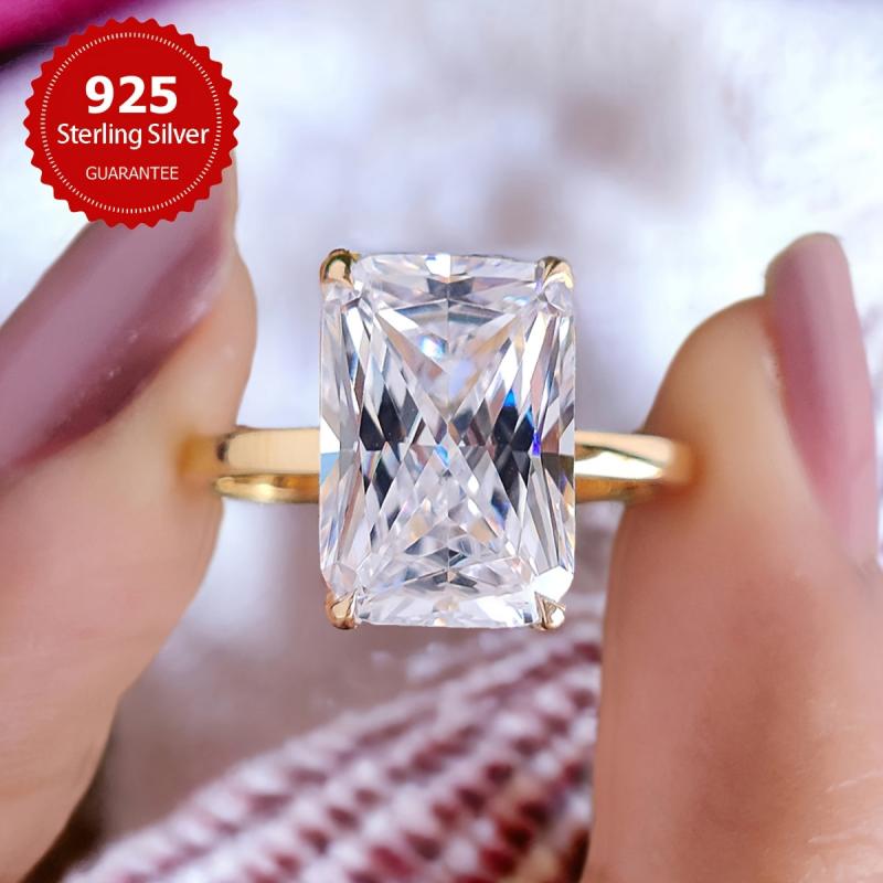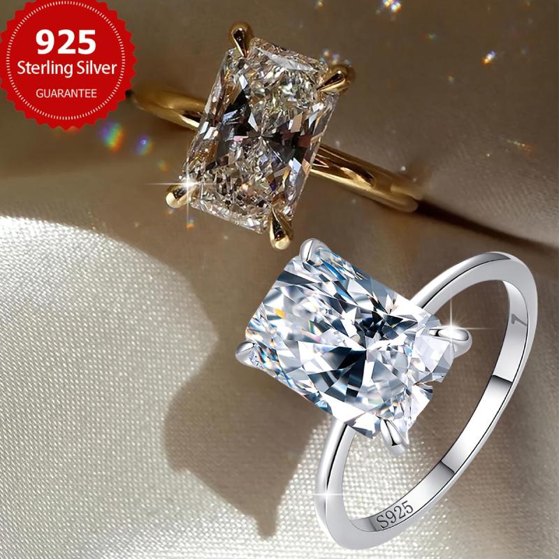 Rectangular Synthetic Gemstone Wedding Ring Women 925 Sterling Silver