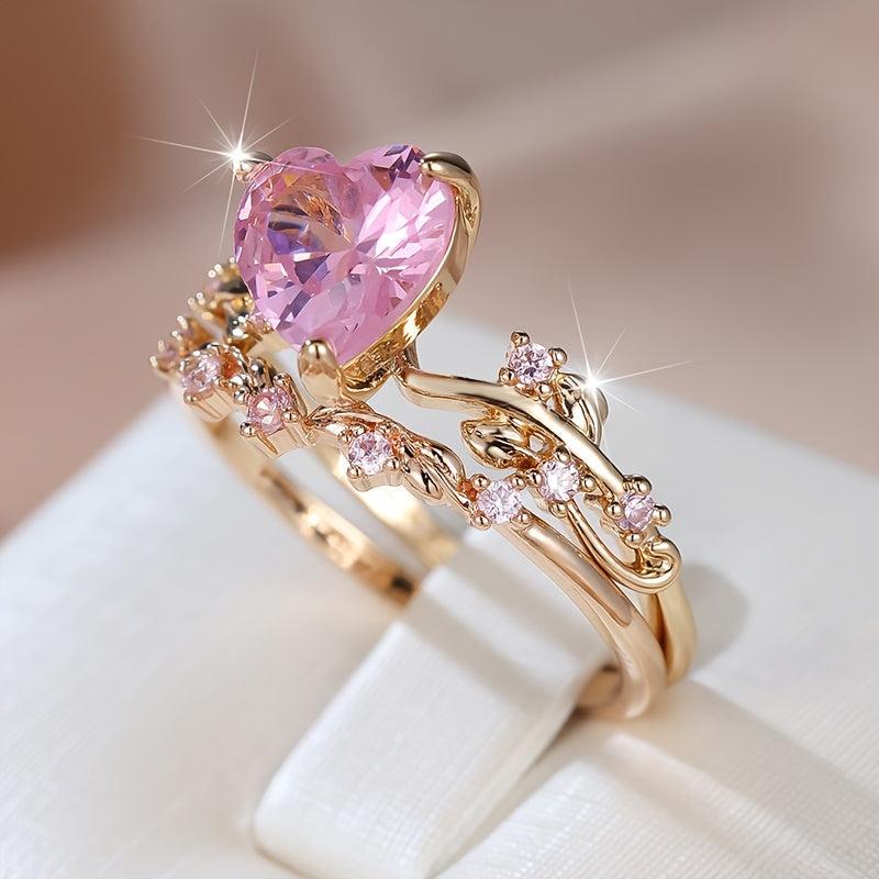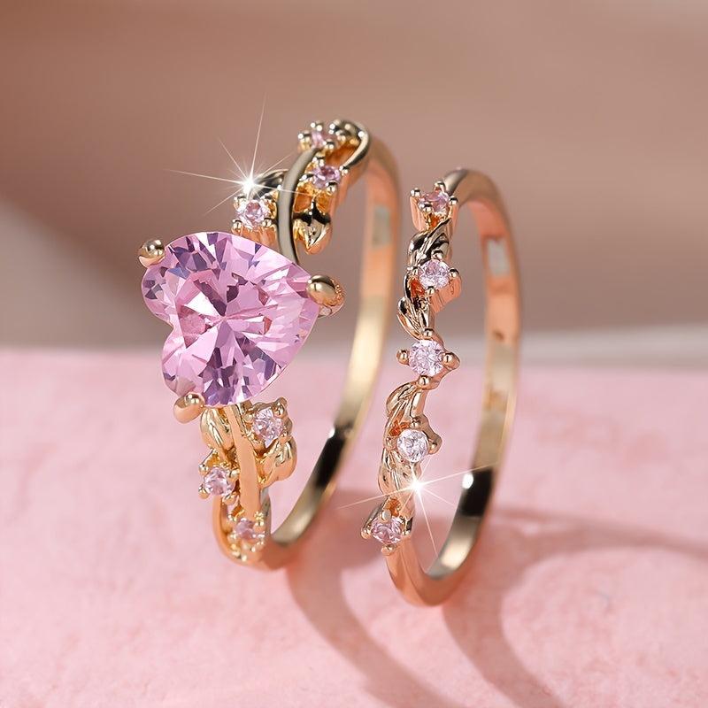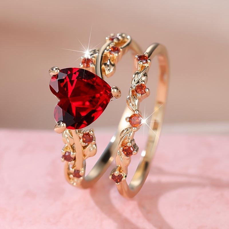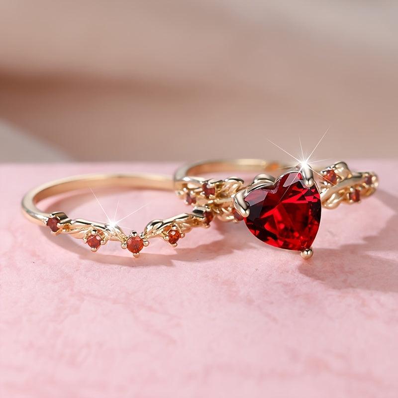 This stunning ring set features a combination of red and pink zirconia stones crafted in a beautiful golden setting. Perfect for parties, birthdays, or as an engagement gift.