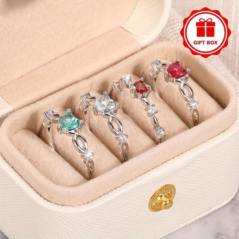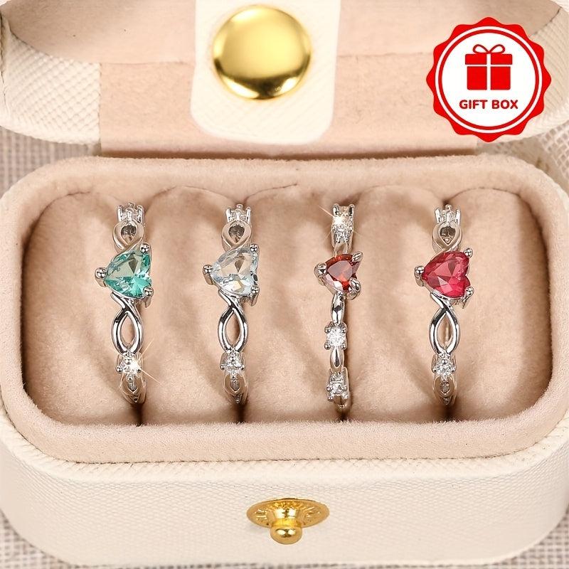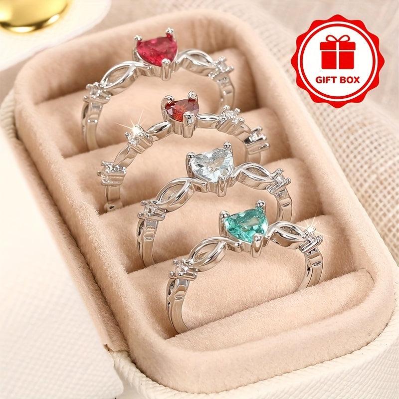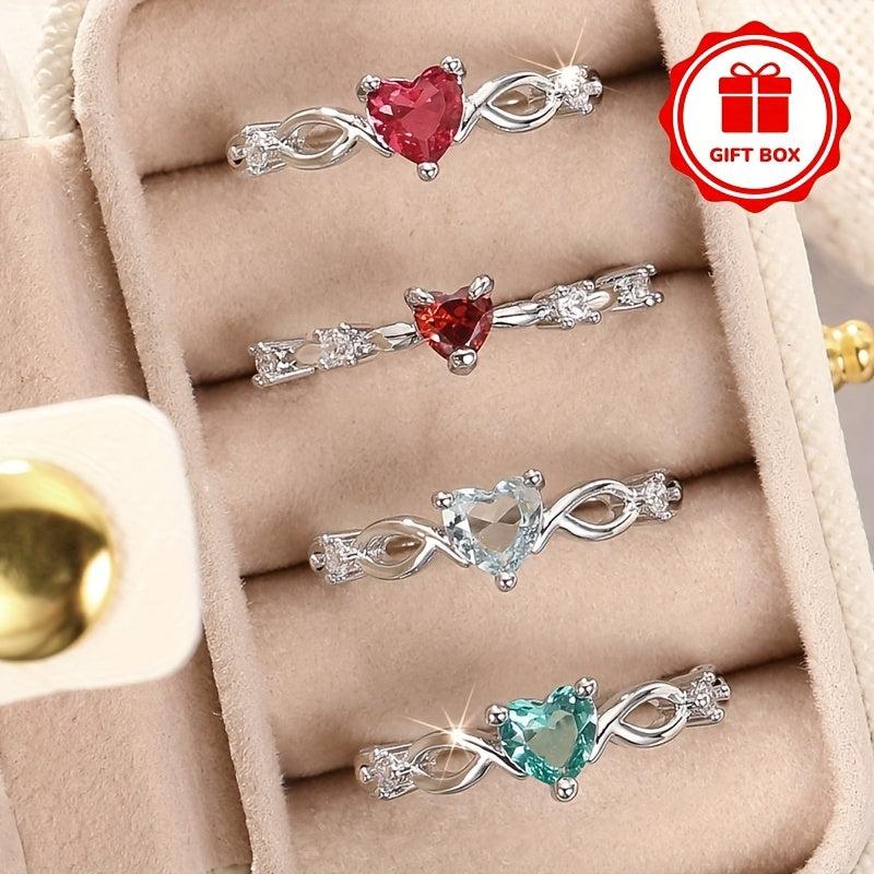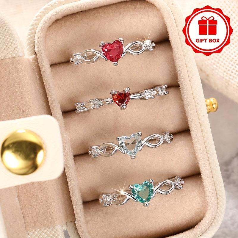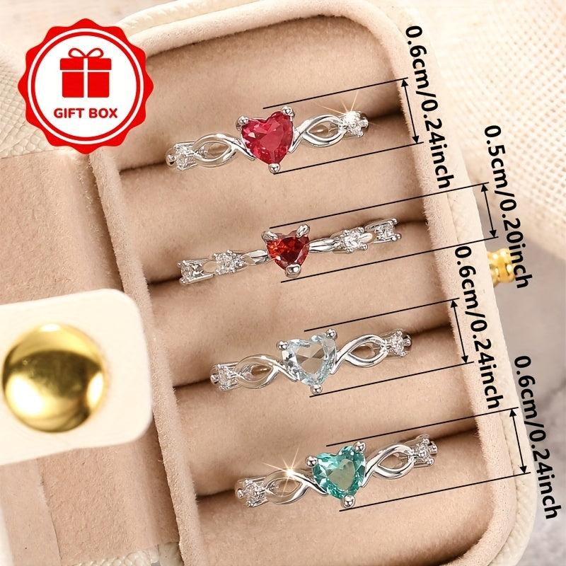 Experience romantic engagement with this 4pcs set of inlay red zirconia heart rings perfect for daily wear and special occasions. Comes with a stylish PU ring storage box.