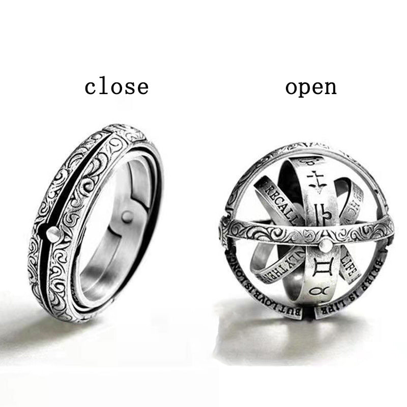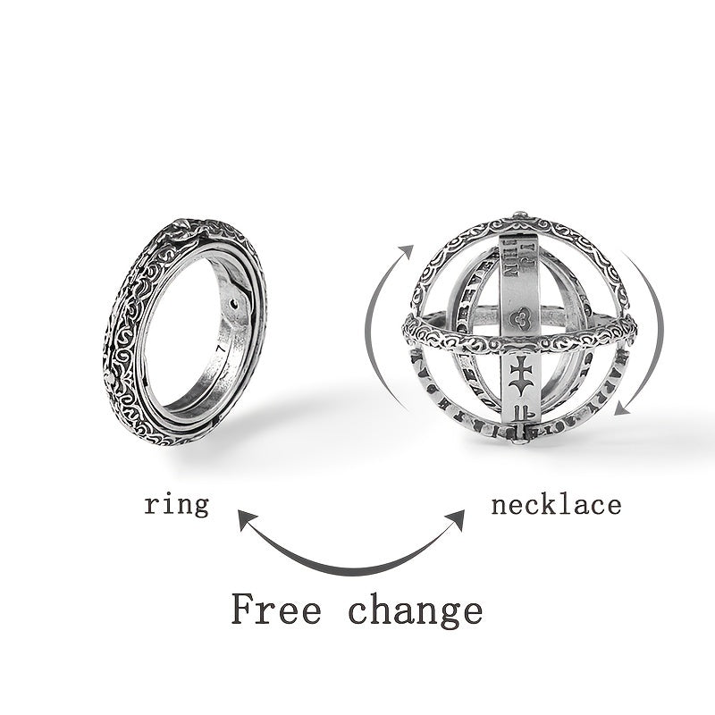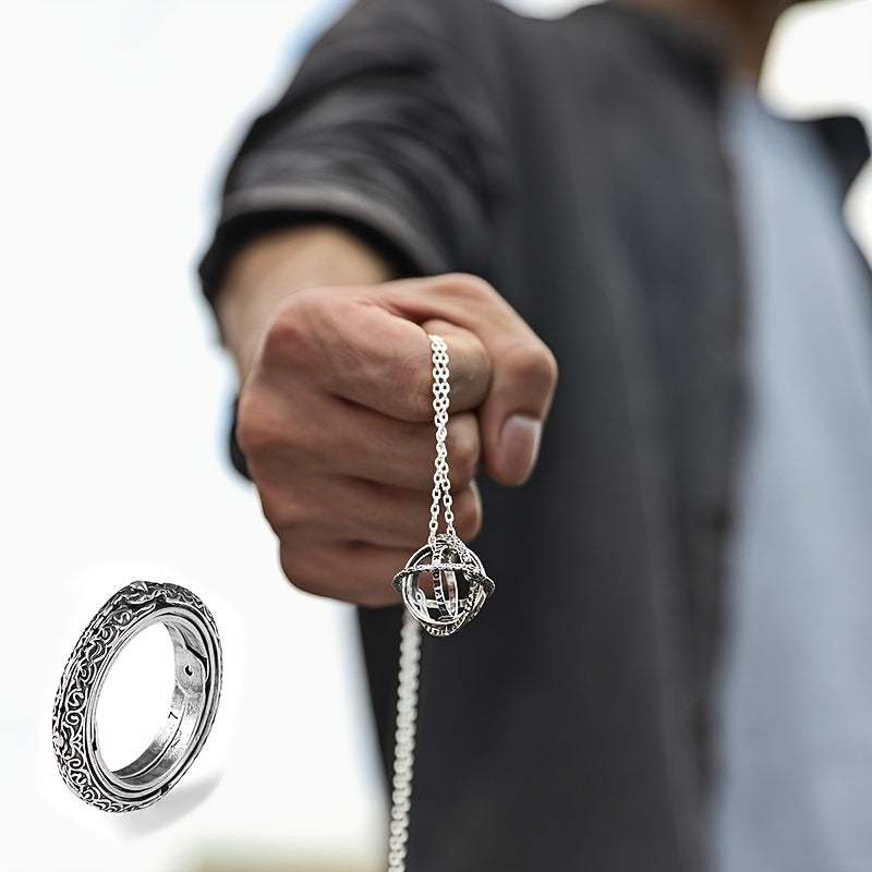 Evoke a sense of wonder with this vintage astronomy-themed ring set. Features a magic ring pendant for men and a chain, perfect for couples.