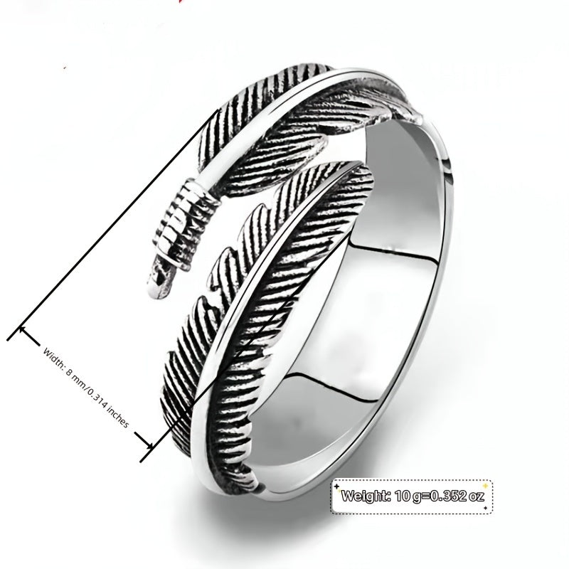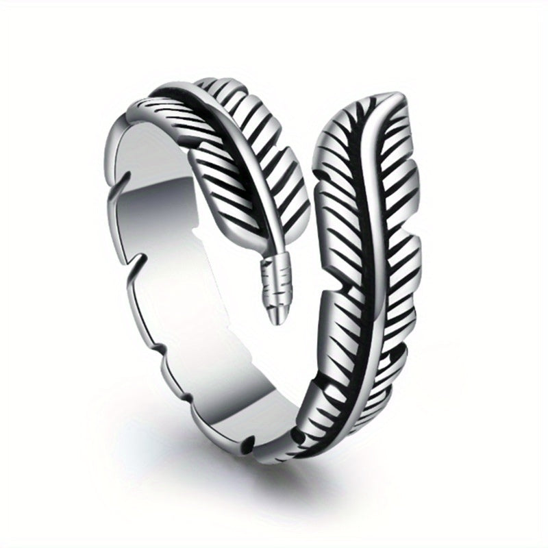 This European and American inspired ring features a creative retro design with feather and leaf elements.