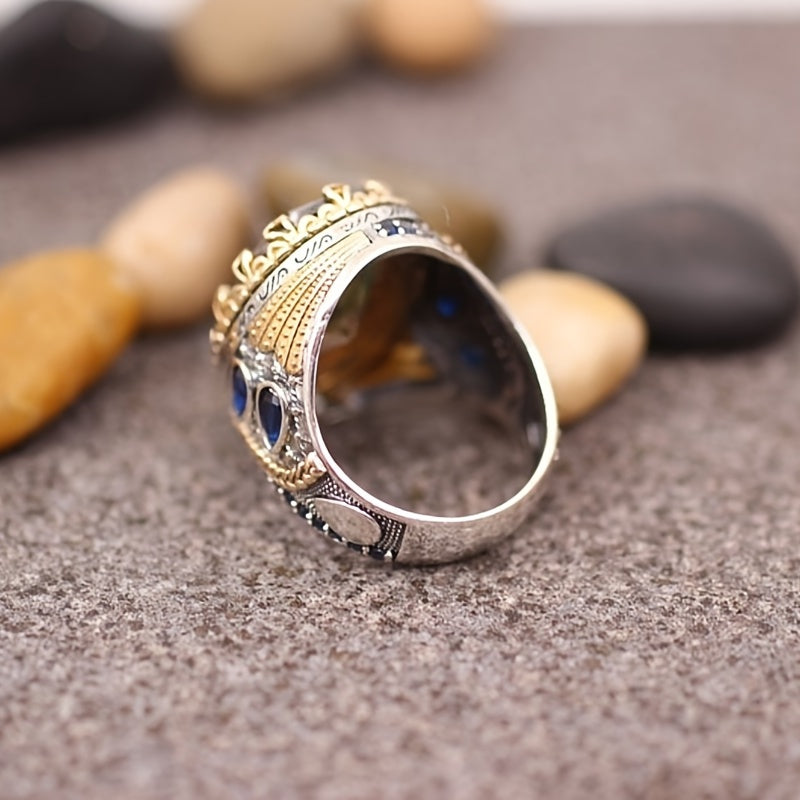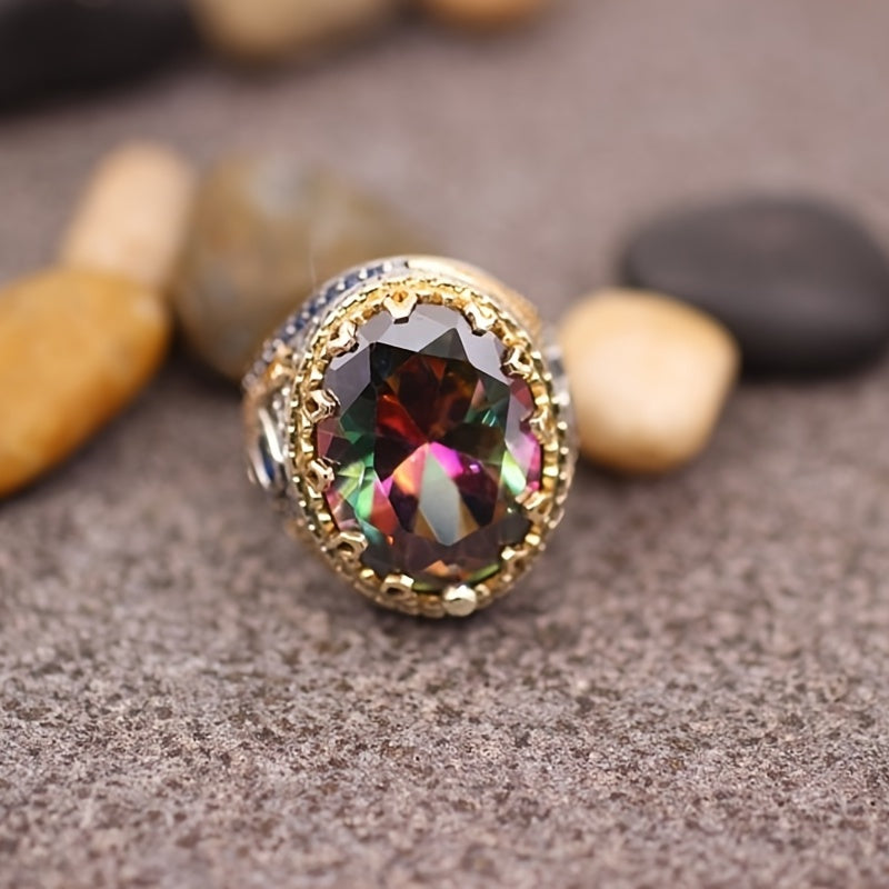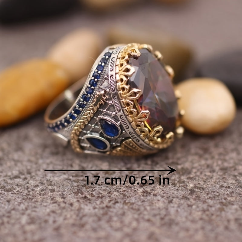 Add a pop of color to your look with this stylish retro ring featuring irregular geometric design and colored zircon stones.