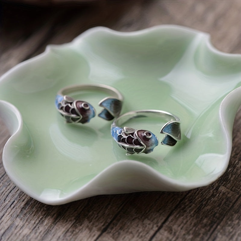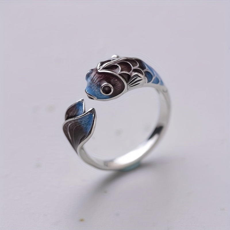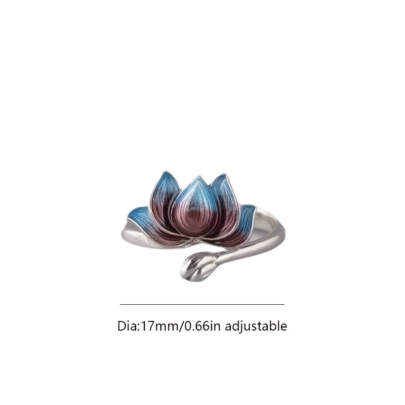 Embrace vintage style with this enchanting Koi enamel ring featuring a beautiful gradient lotus design, suitable for both men and women.