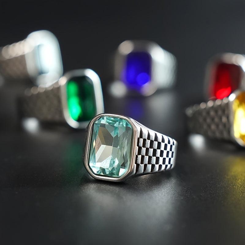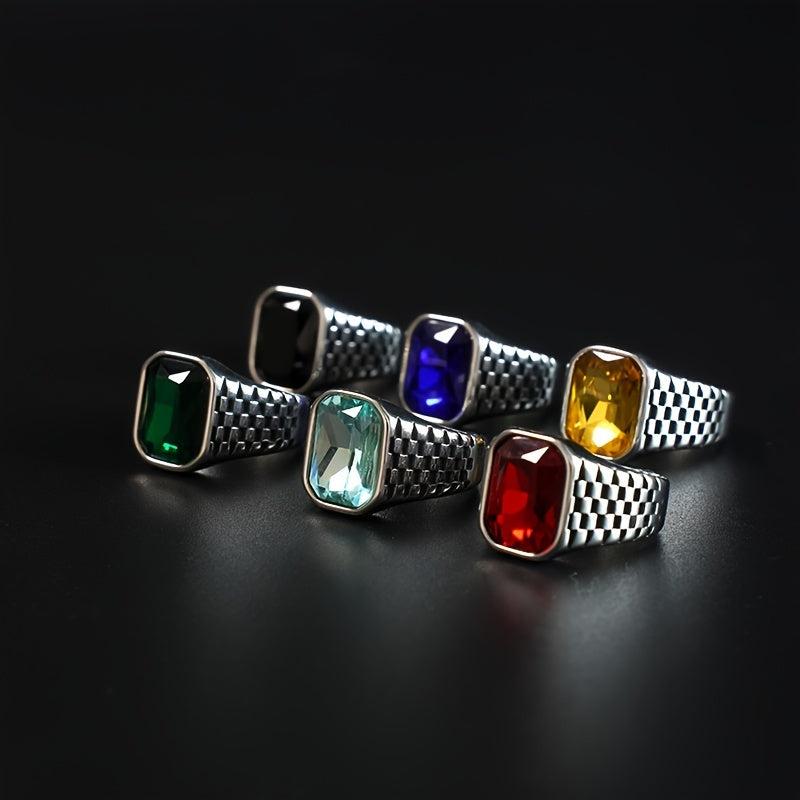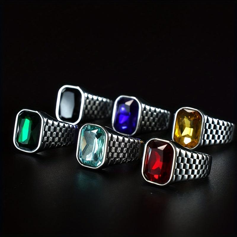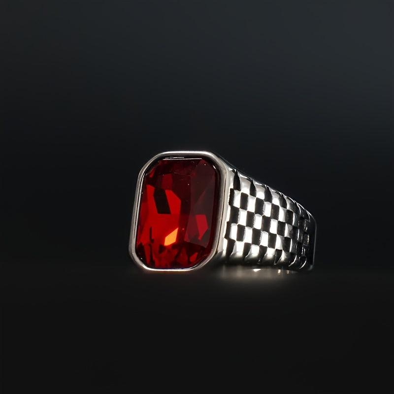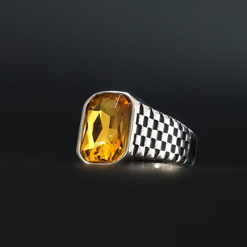 This retro red and yellow faux gemstone men's ring is crafted from high-quality stainless steel, perfect for a business style look. It is suitable for both men and women.