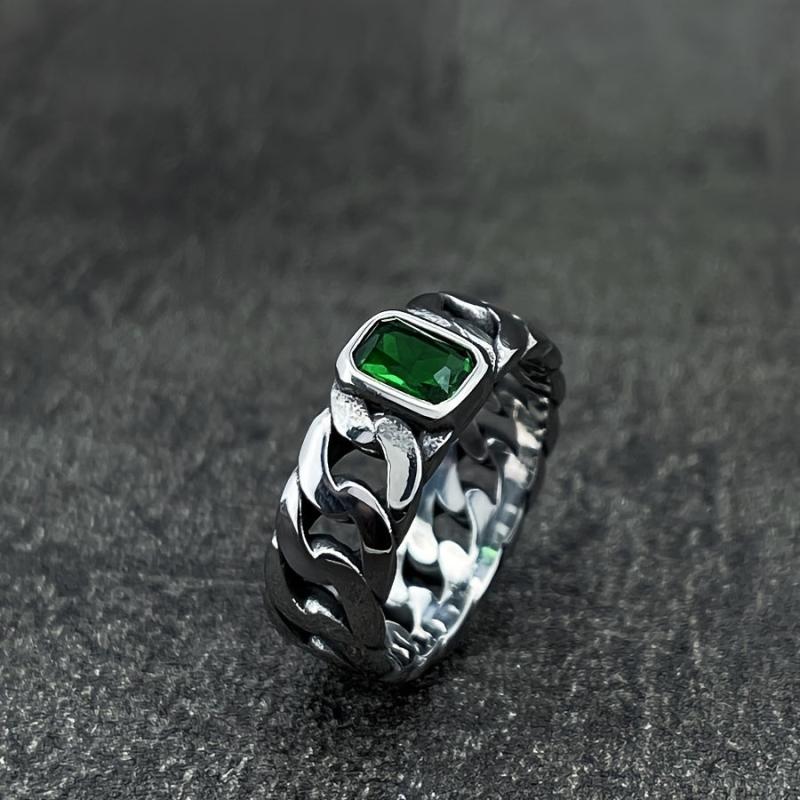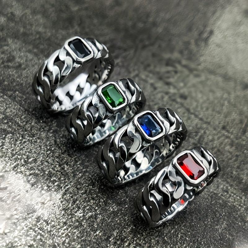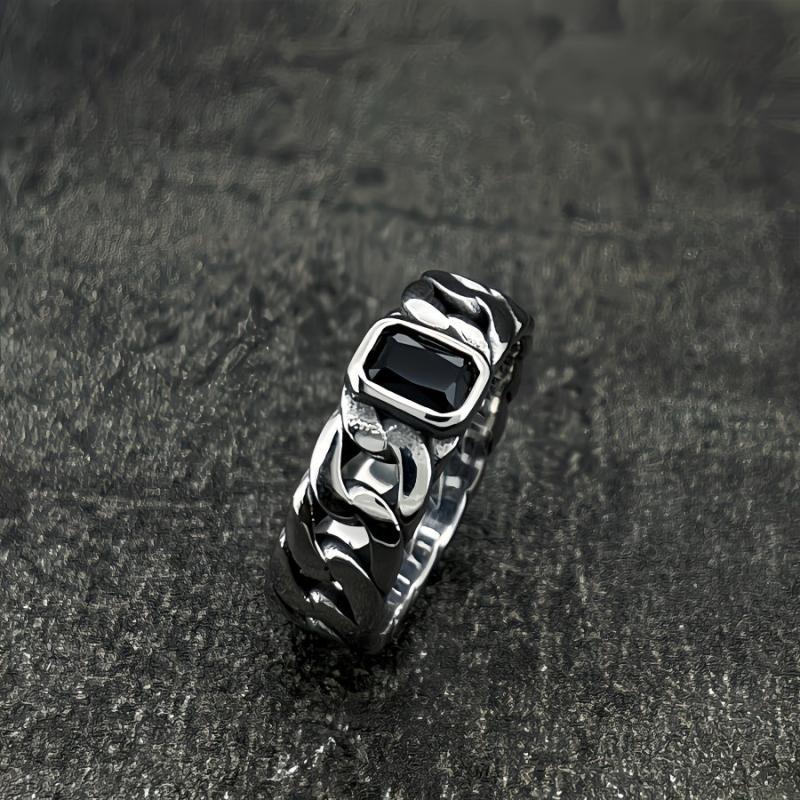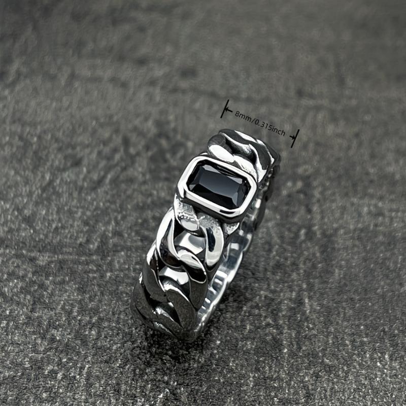 Elegant unisex ring featuring synthetic zirconia on a durable titanium band. Perfect for daily wear and adds a touch of retro charm to any outfit.