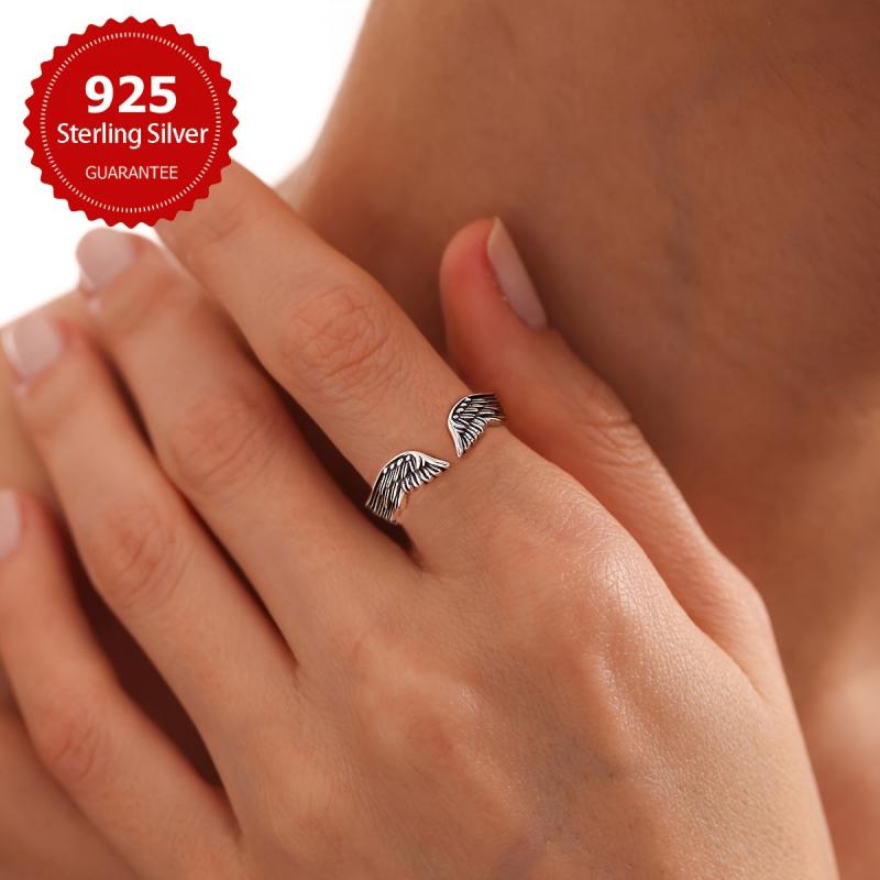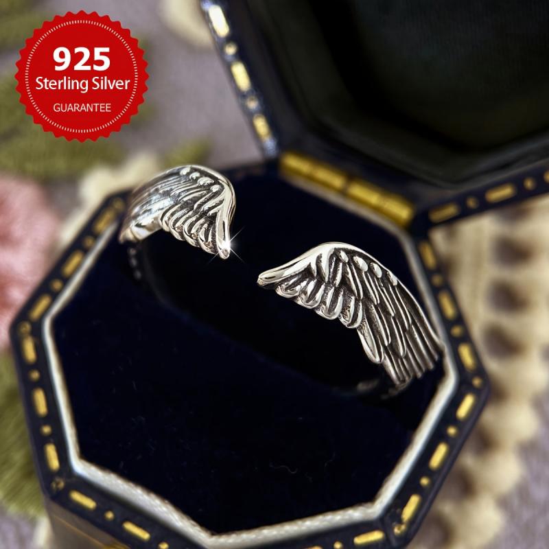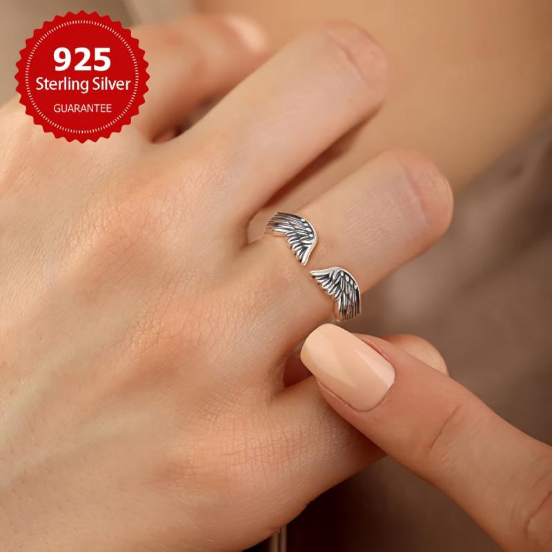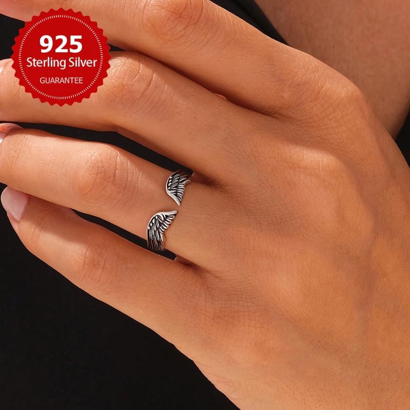 This retro wing ring features a pure silvery feather design. It is adjustable and makes a great gift for women. Weighs approximately 2g.