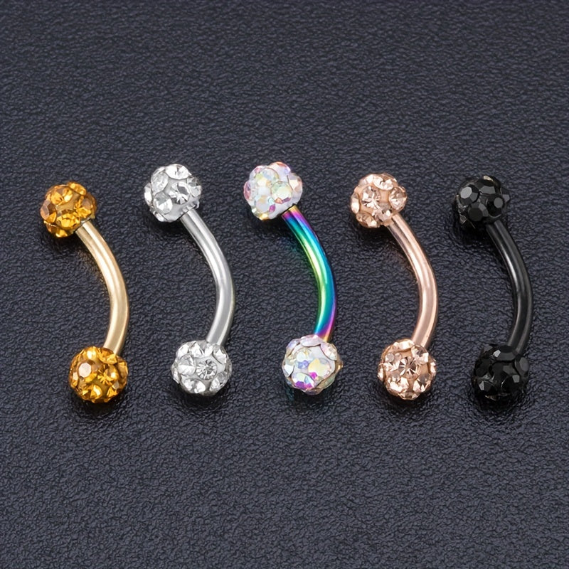 Add a touch of sparkle with this rhinestone curved barbell ring. Made of surgical steel, perfect for eyebrow, lip, or navel piercings.