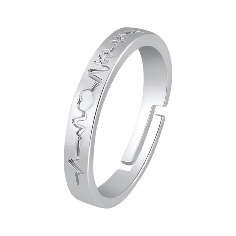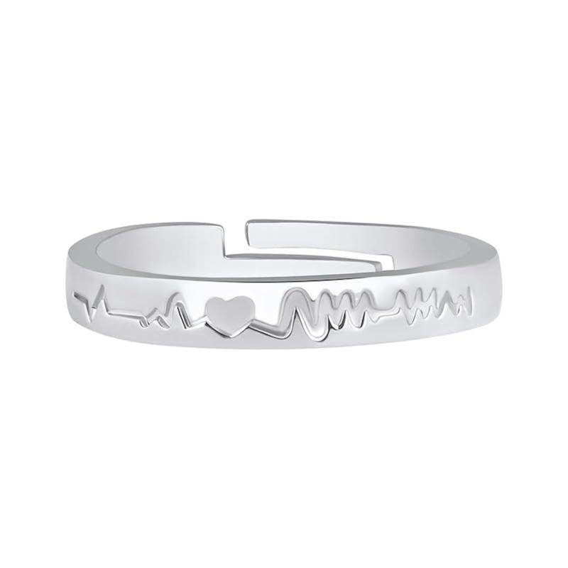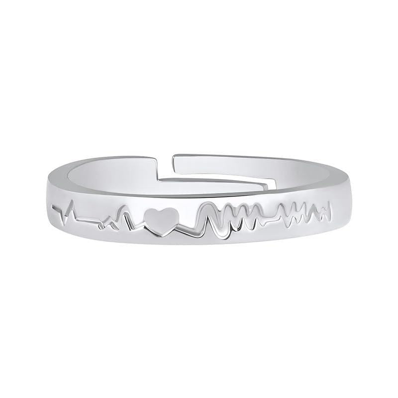 Express your love with this elegant rhodium plated finger ring featuring a heart and heart beat design.