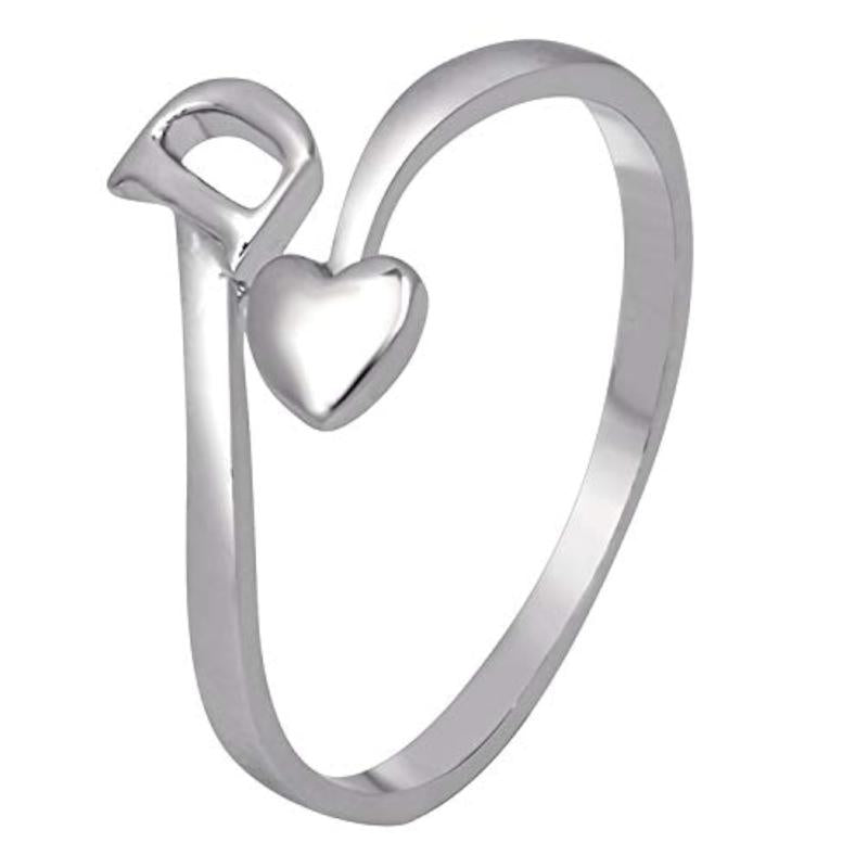 Add a touch of personal flair with this 'D' initial and heart finger ring. Rhodium plated for durability and shine.