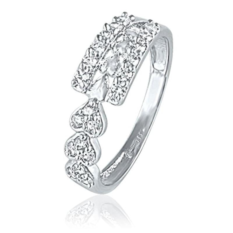 Add a touch of charm with this stunning rhodium plated ring featuring three hearts embellished with CZ stones. Perfect for everyday wear or special occasions.