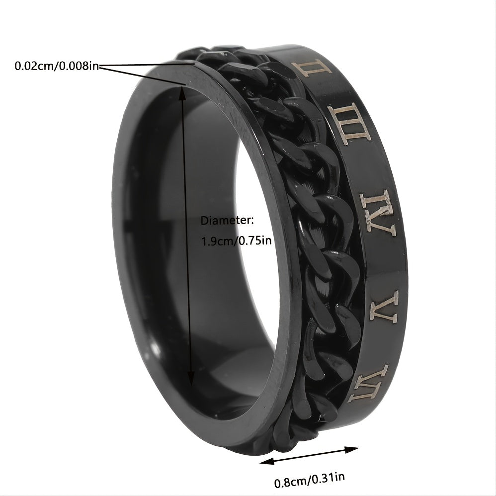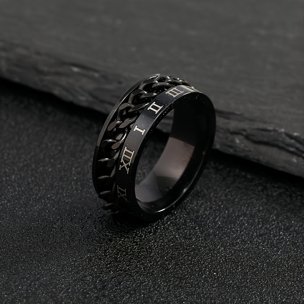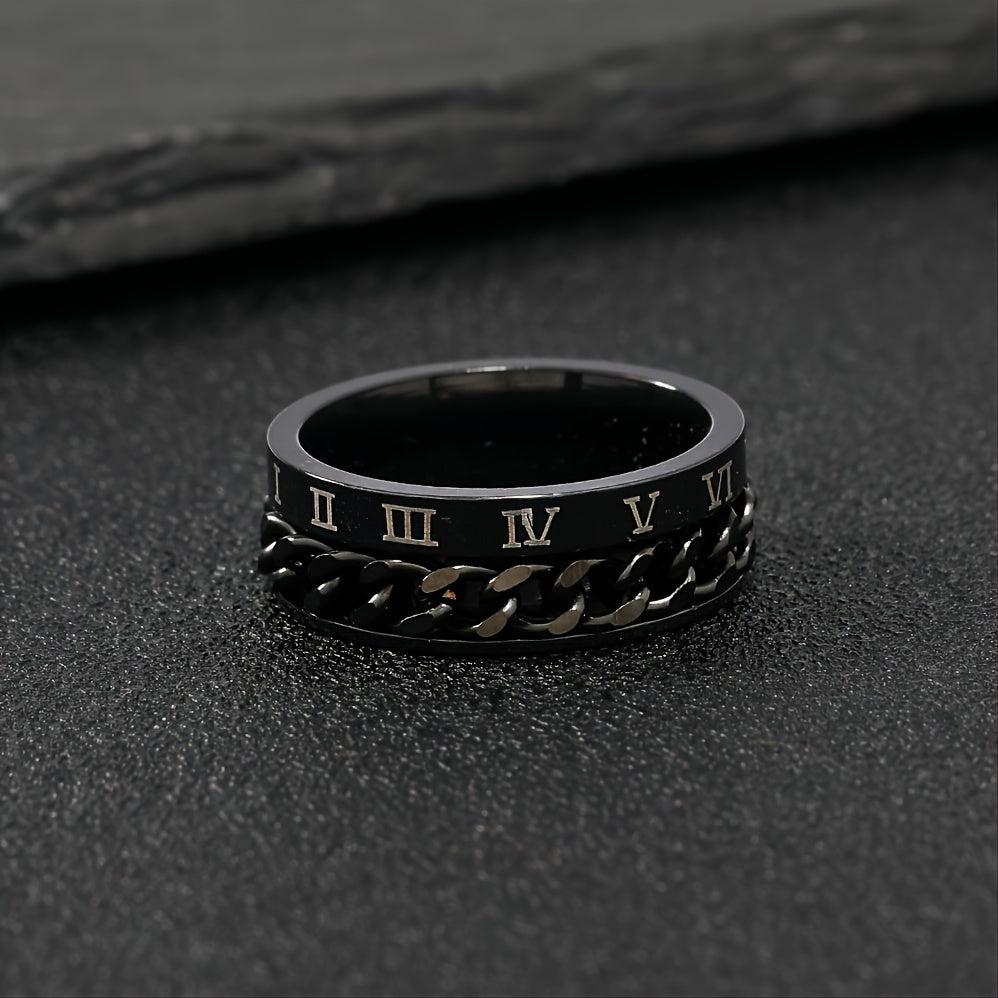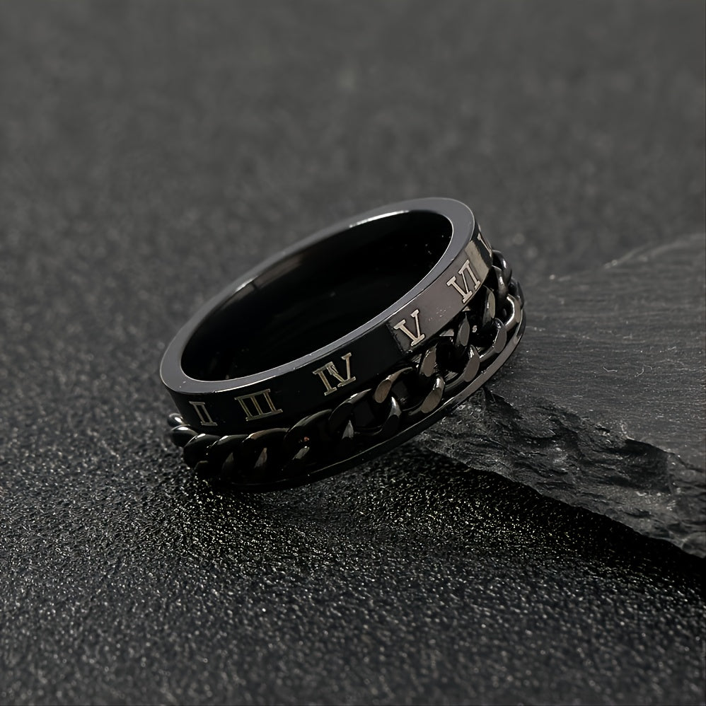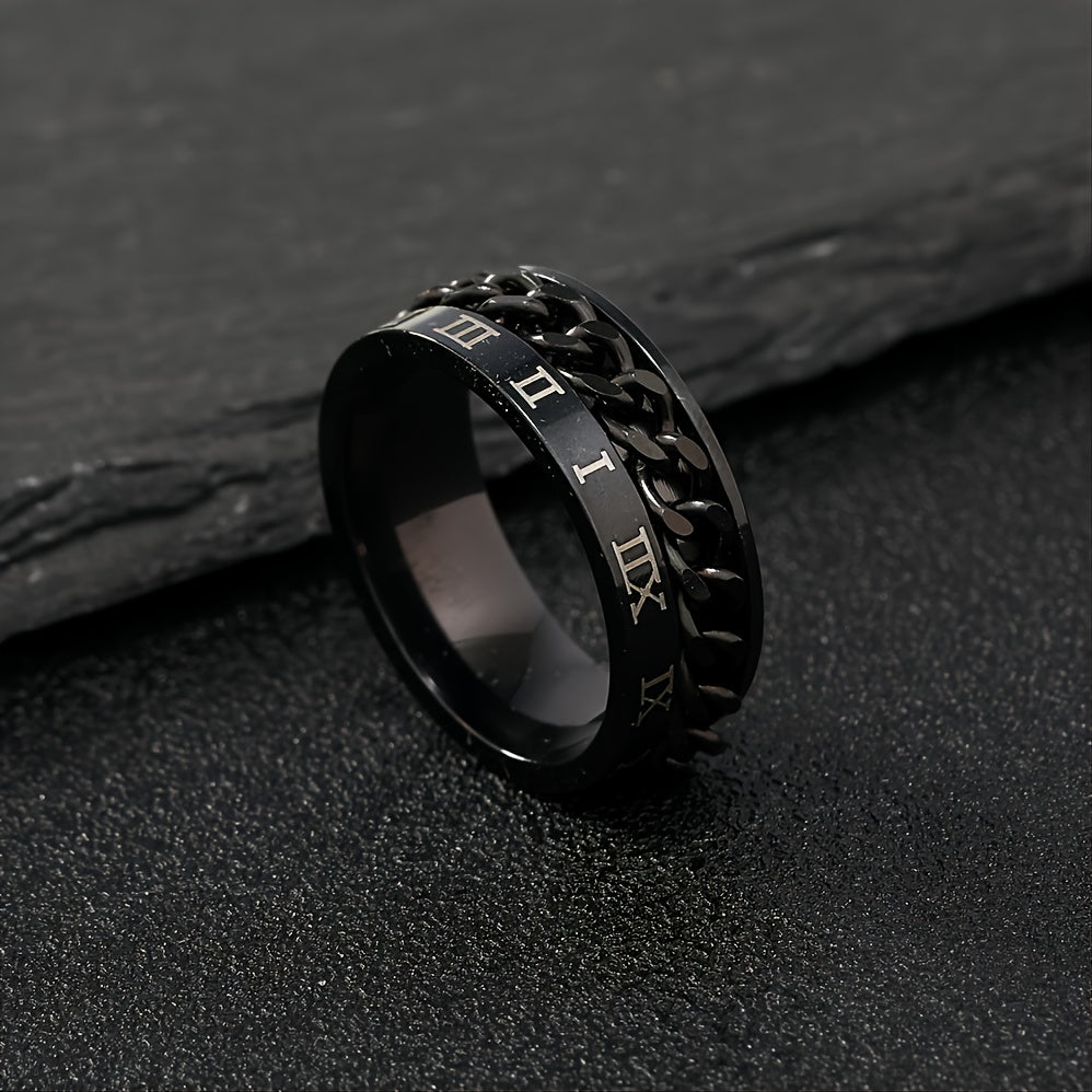 This stylish ring features Roman numeral design made of durable stainless steel.