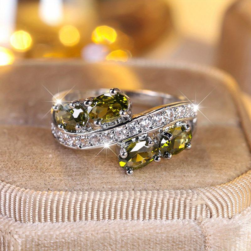This stunning green and zirconia band ring is perfect for engagements, banquets, parties, or as a gift. Its romantic design adds elegance to any outfit.