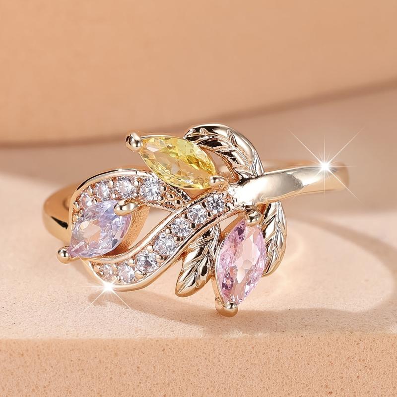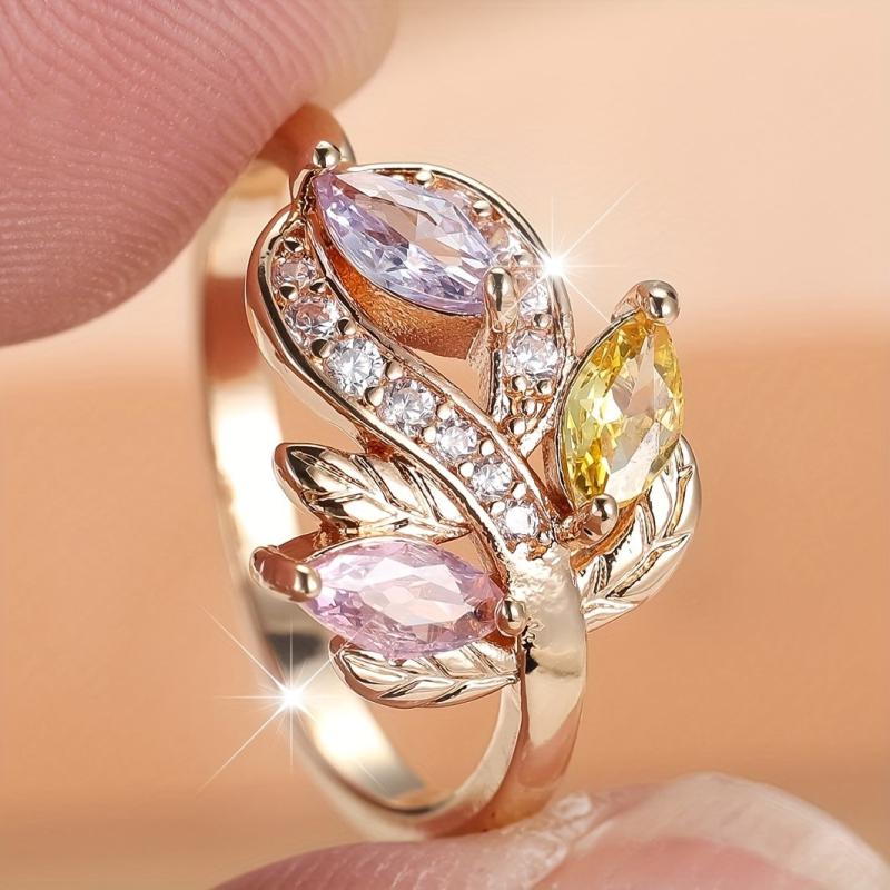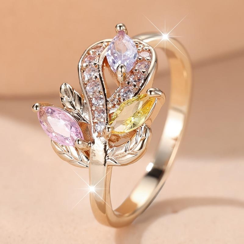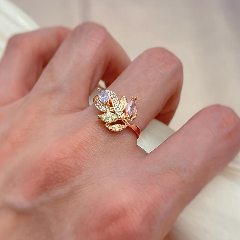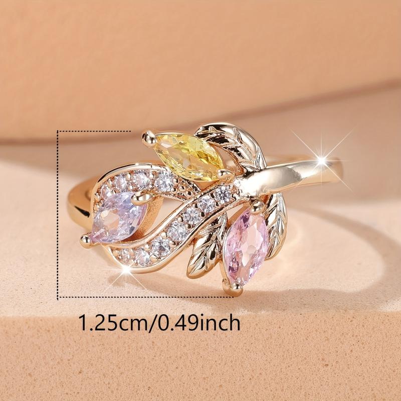 This beautiful synthetic zirconia leaf ring is perfect for fashionable women at parties, weddings, and seasonal events. It adds a touch of romance and elegance to any outfit.