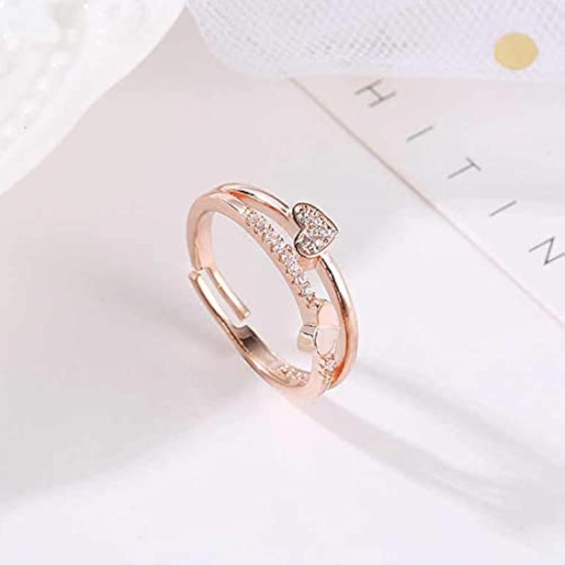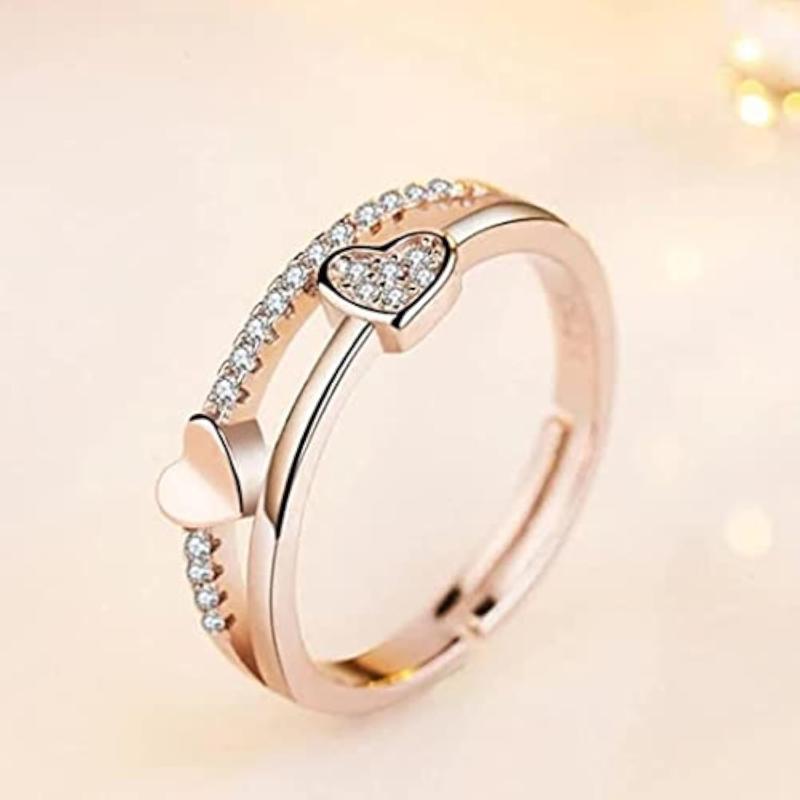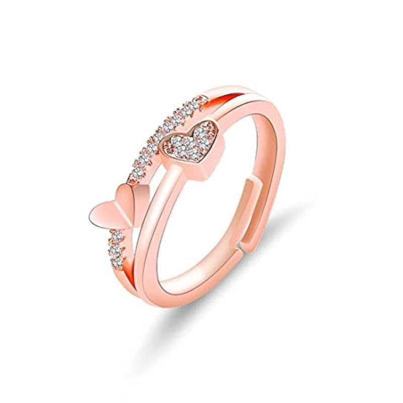 Enhance your look with this stylish Rose Gold Plated Adjustable Ring featuring AD stones.