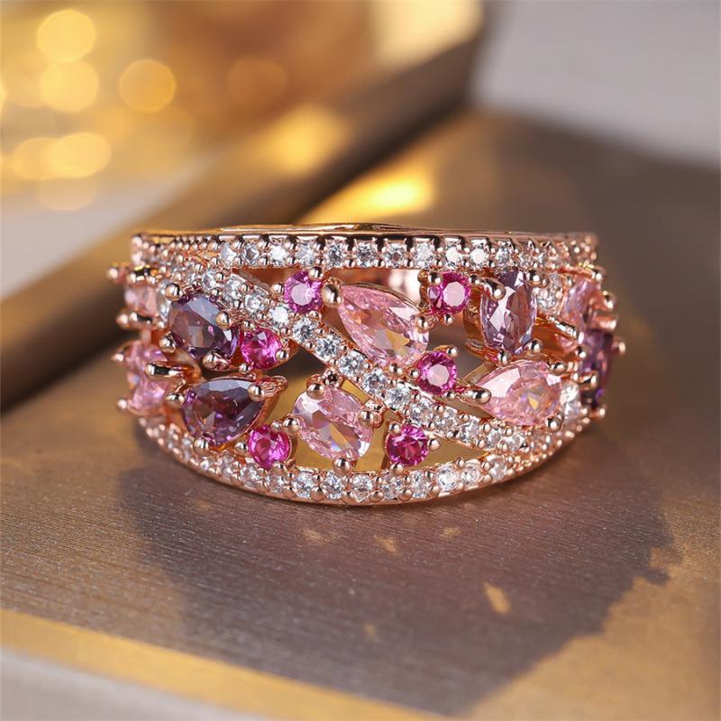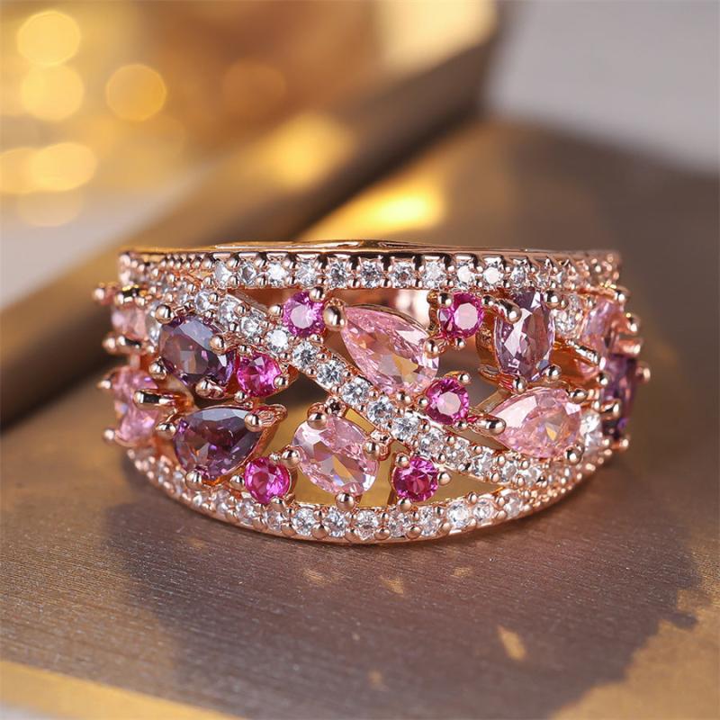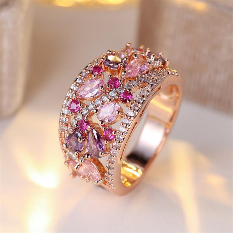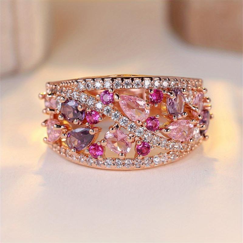 Elegant boho style ring featuring synthetic zirconia set in rose golden copper. Perfect for daily wear and vacation outfits.