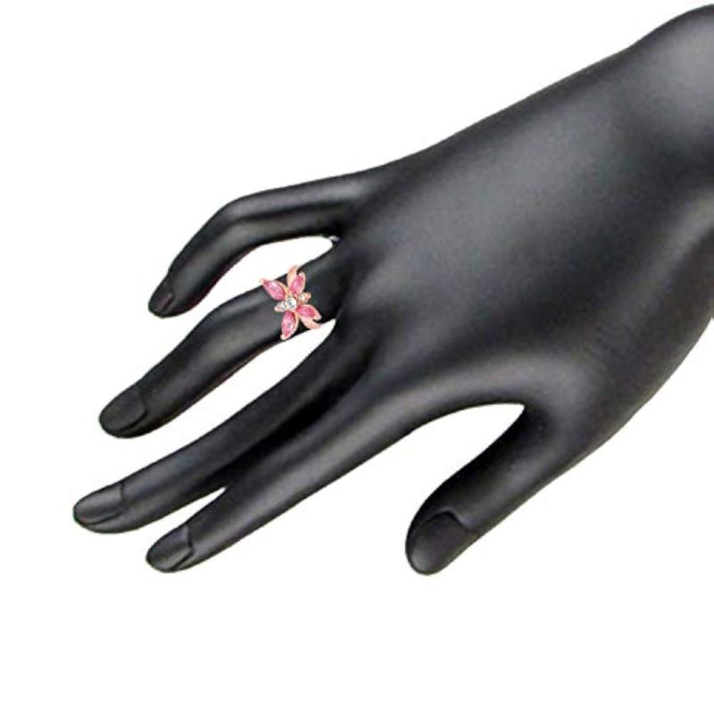 Enhance your style with this stunning rose plated butterfly ring featuring crystal stones.