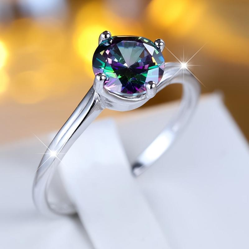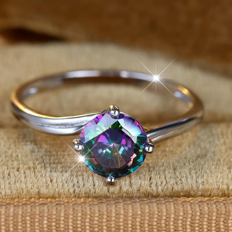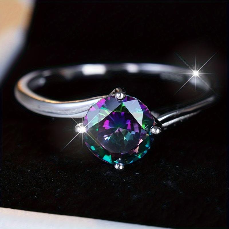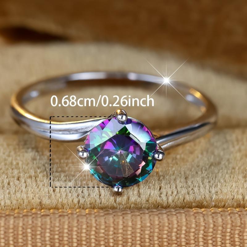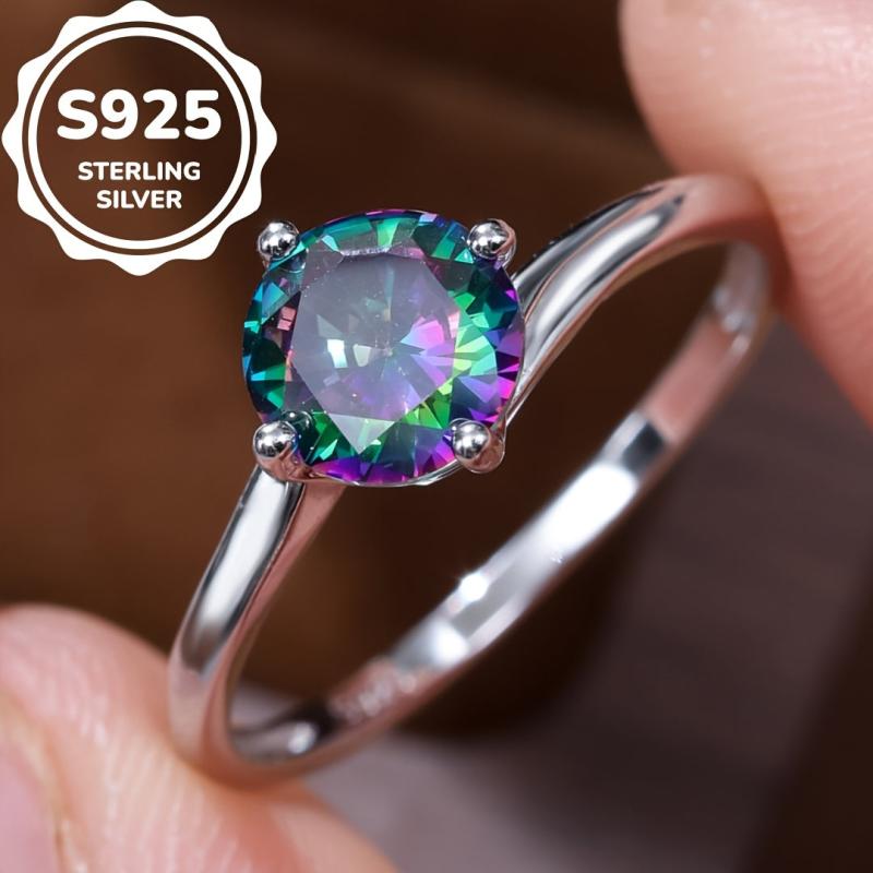 This s925 pure silvery ring features colorful synthetic zirconia, a stunning piece for women.
