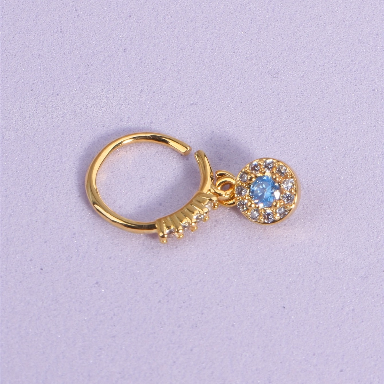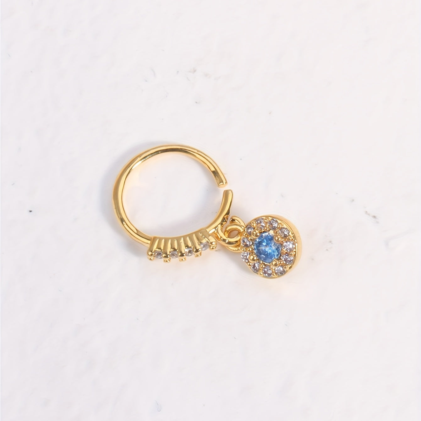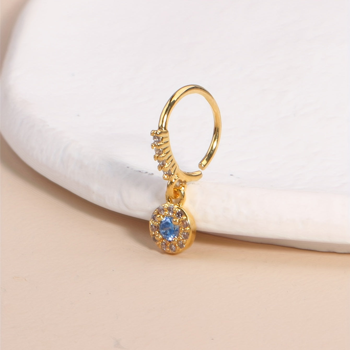 Elegant dangle nose ring featuring inlaid round cut zircon, perfect for women and girls. Add a touch of glamour to your look with this stylish body piercing jewelry.